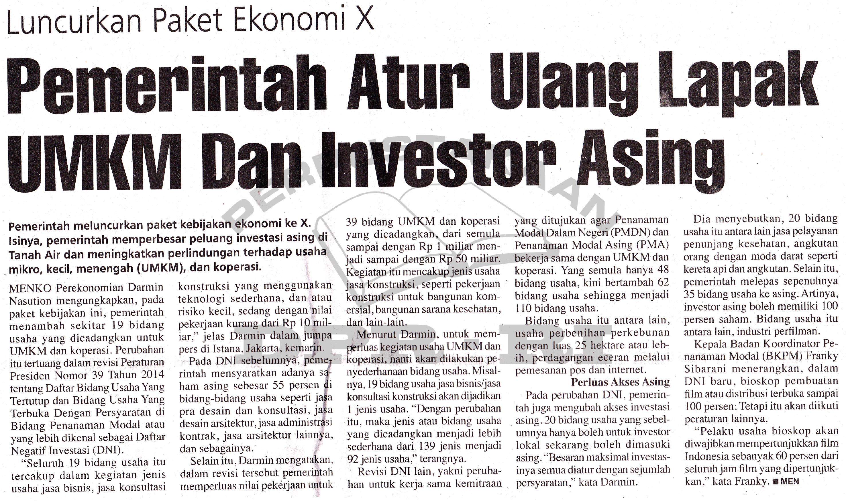 | Judul | Luncurkan Paket Ekonomi X: Pemerintah Atur Ulang Lapak UMKM dan Investor Asing |
