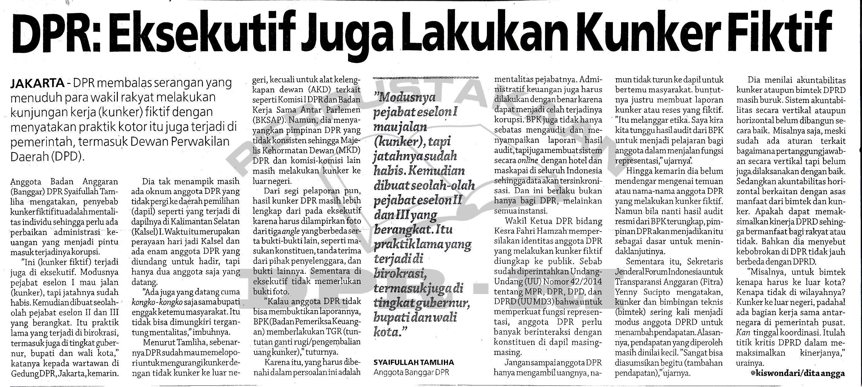 | Judul | DPR: Eksekutif Juga Lakukan Kunker Fiktif |