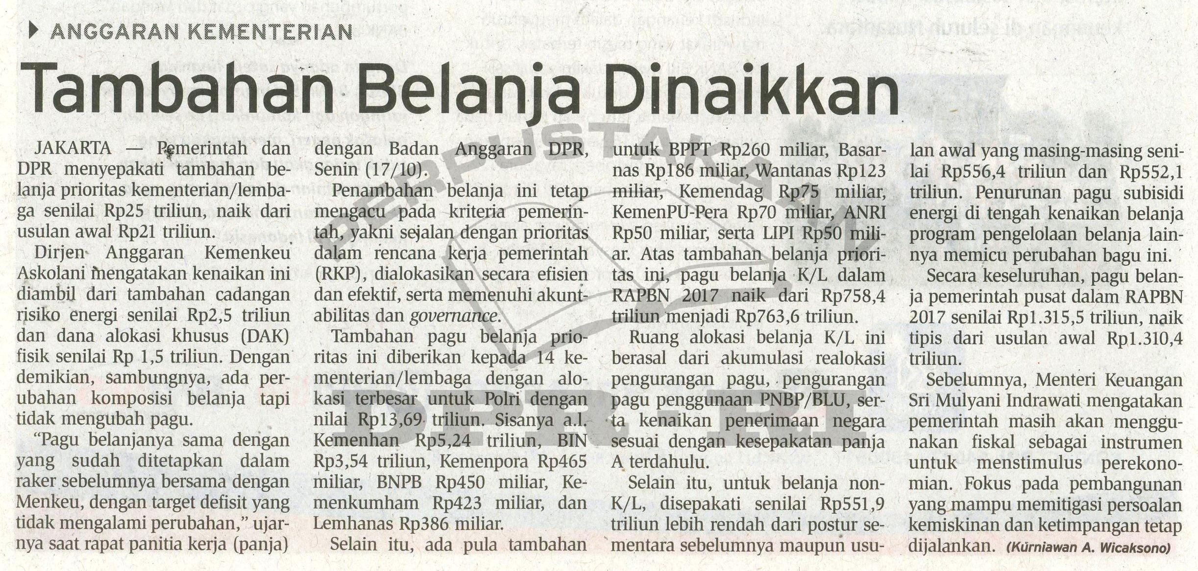 | Kata Kunci | tambahan belanja kementerian, lembaga, Dirjen Anggaran Kemenkeu, DAK, Dana Alokasi Khusus, anggaran kementerian/lembaga |