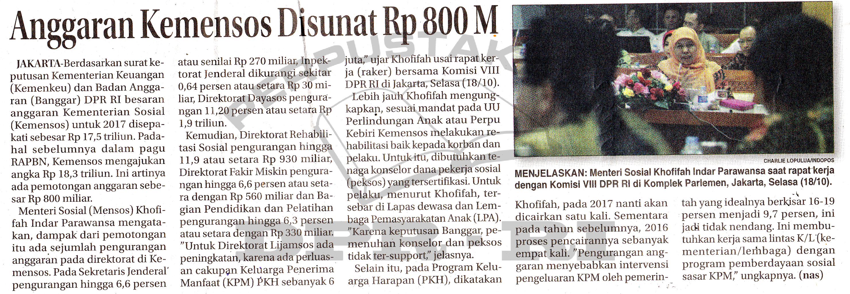 | Judul | Anggaran Kemensos Disunat Rp 800 M |