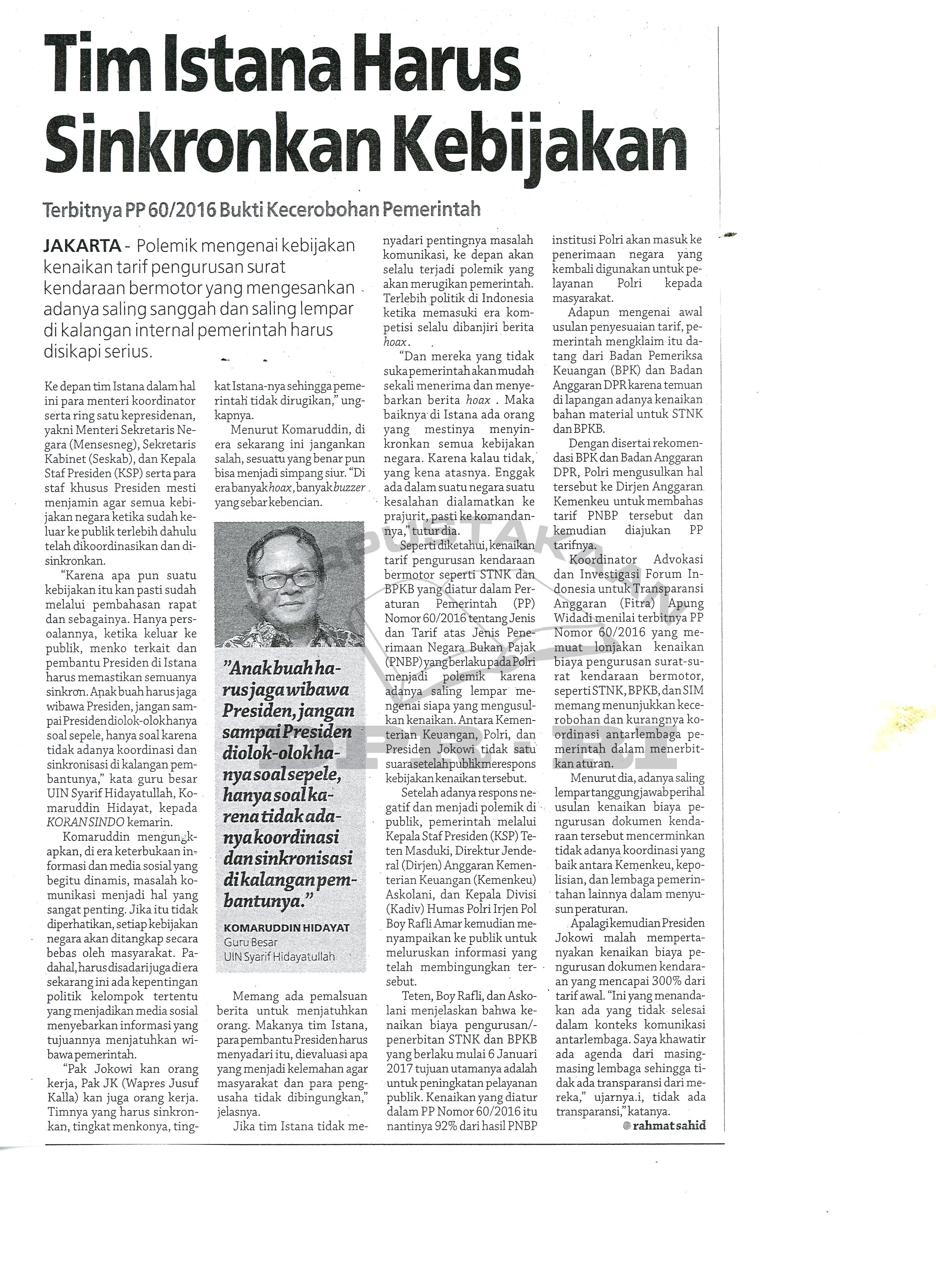 | Judul | Tim Istana Harus Sinkronkan Kebijakan |