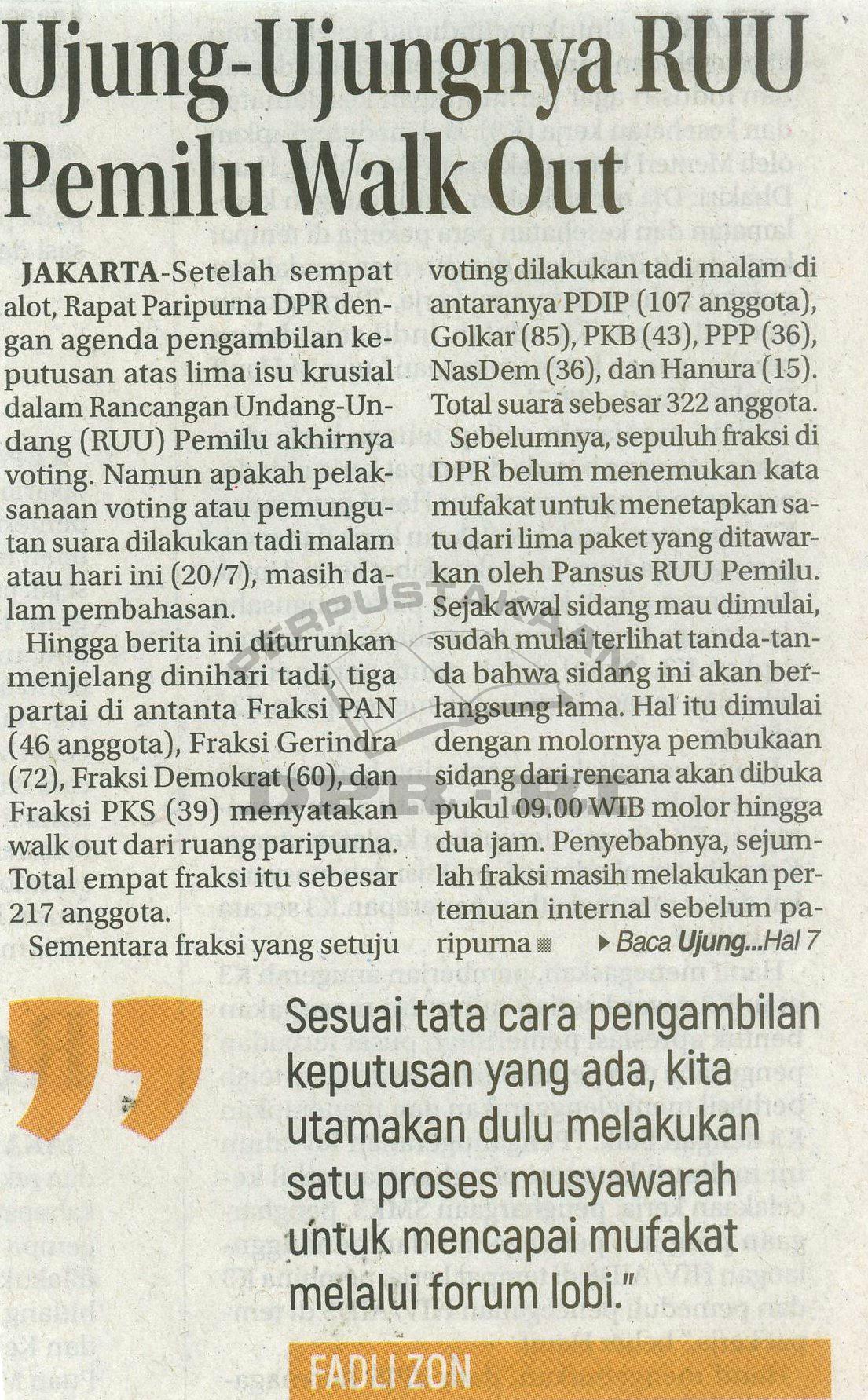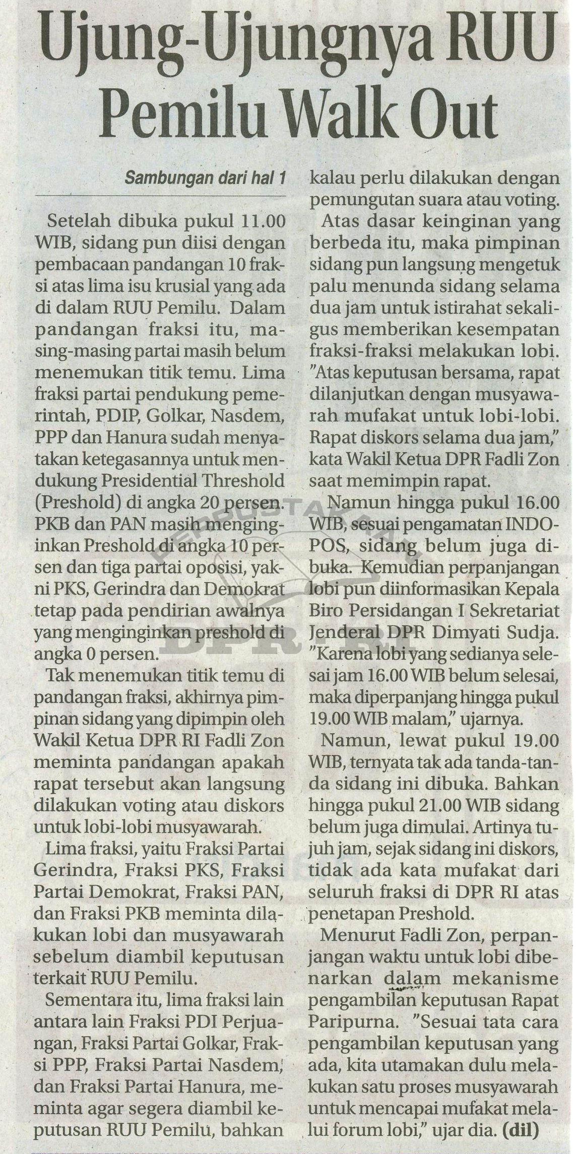 | Judul | Ujung-Ujungnya RUU Pemilu Walk Out |