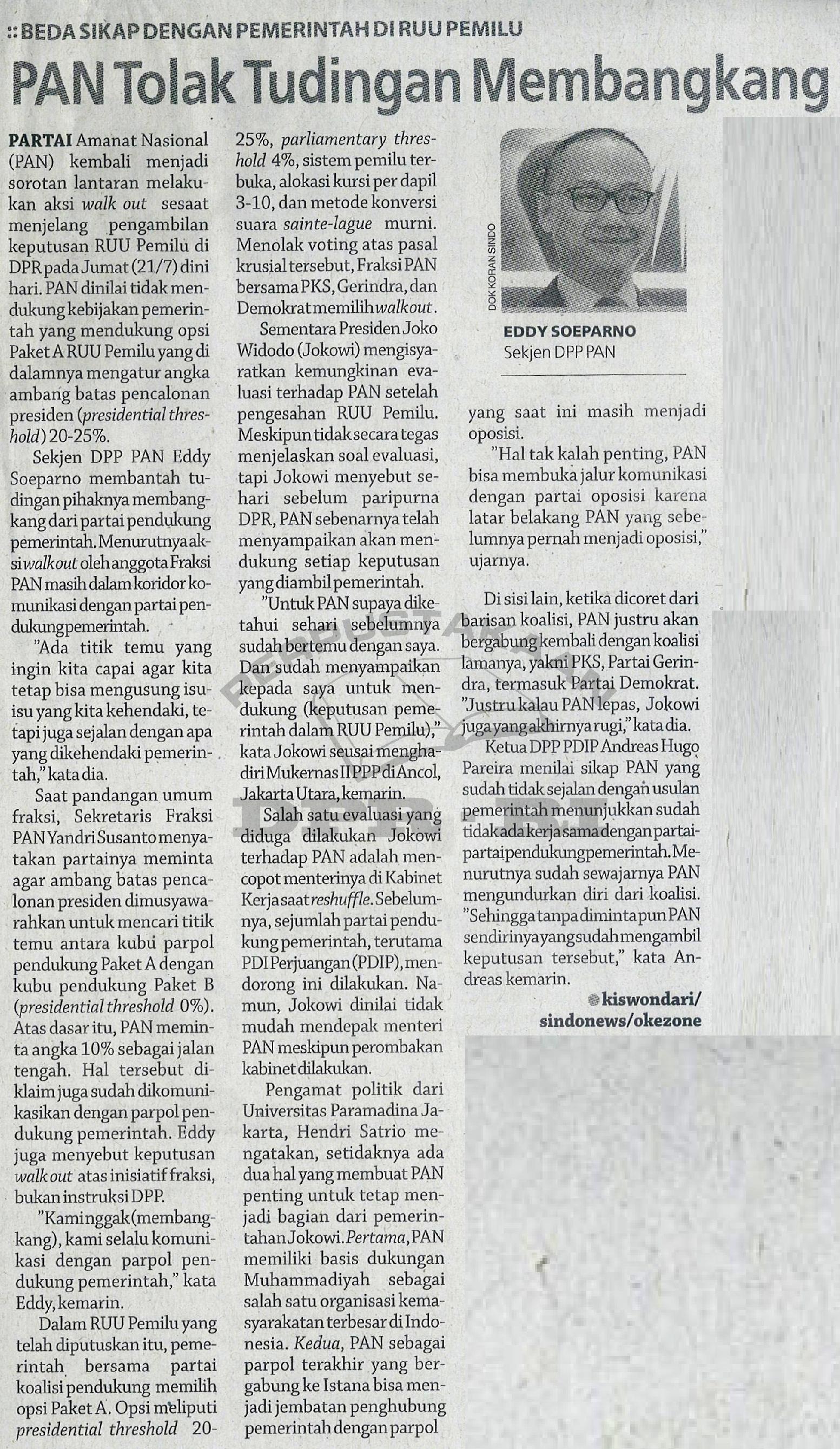 | Judul | Beda sikap dengan pemerintah di RUU Pemilu, PAN tolak tudingan membangkang |