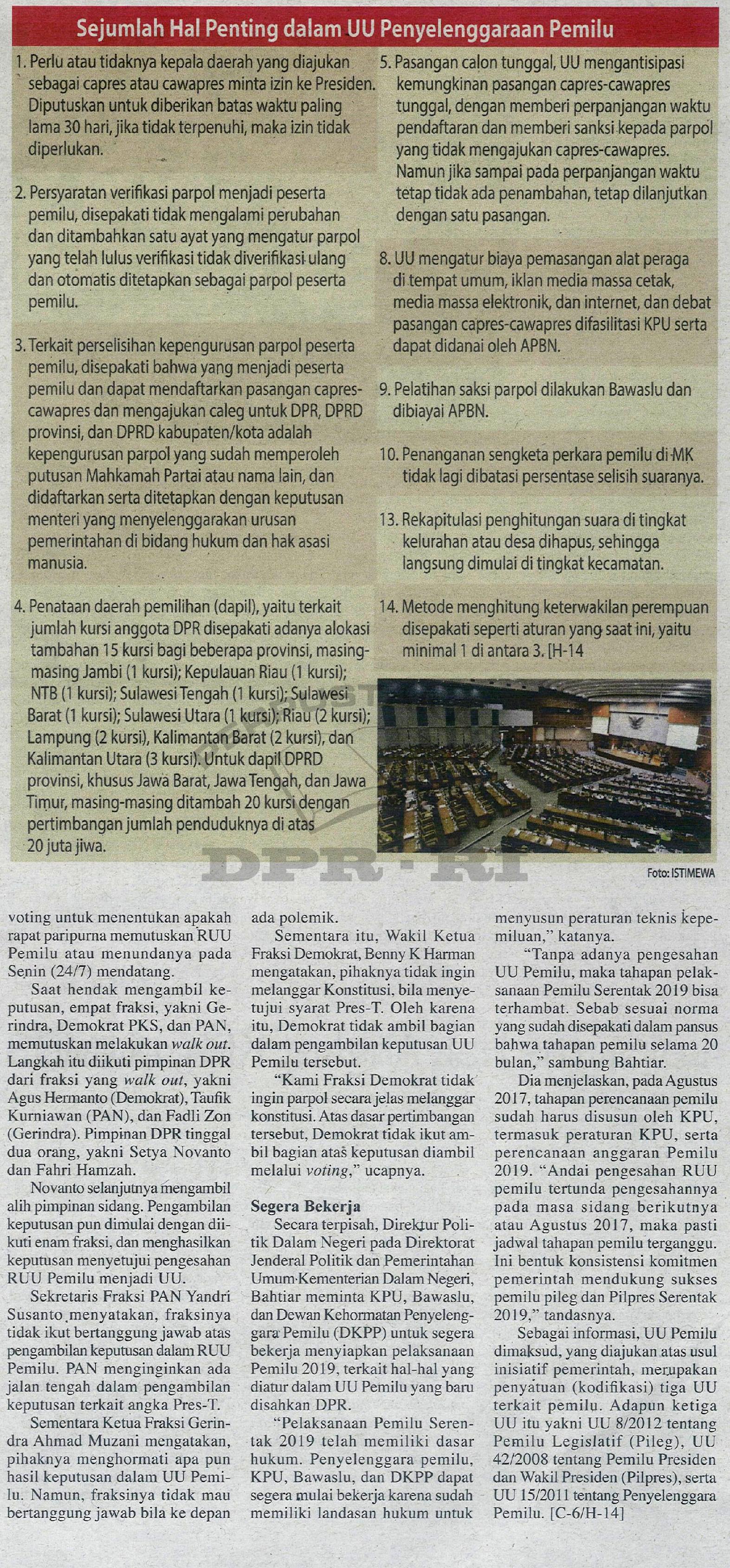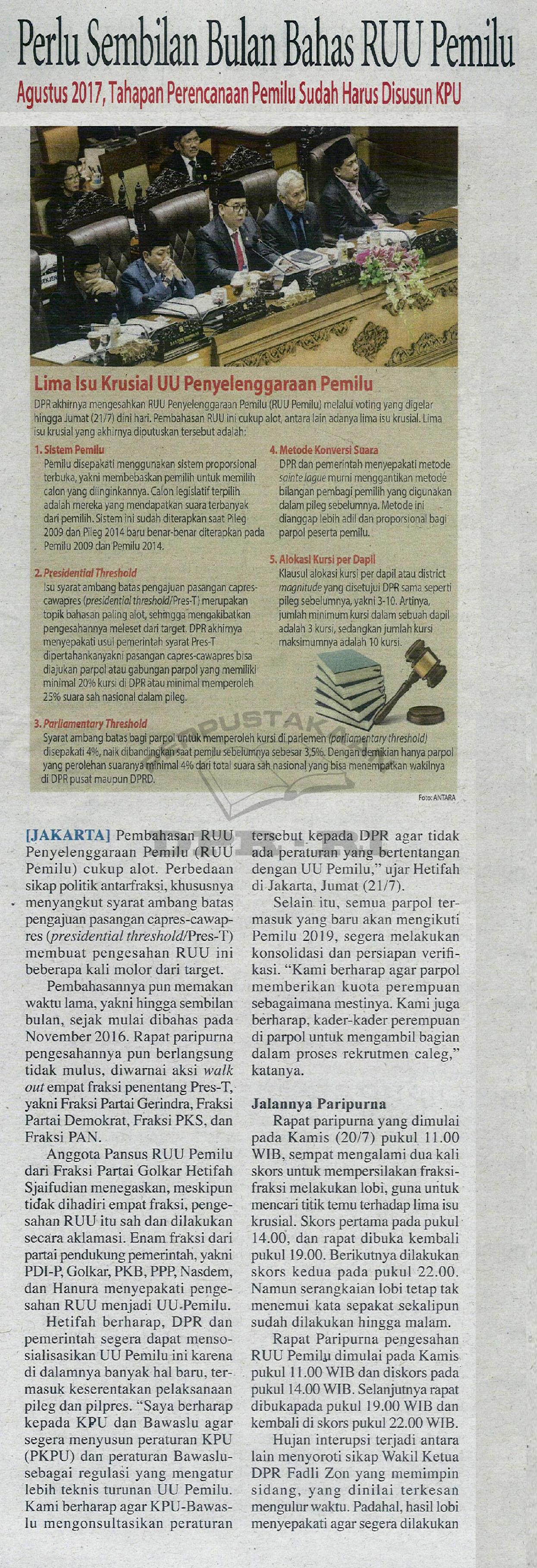 | Judul | Perlu sembilan bulan bahas RUU Pemilu, Agustus 2017 tahapan perencanaan pemilu sudah harus disusun KPu |
