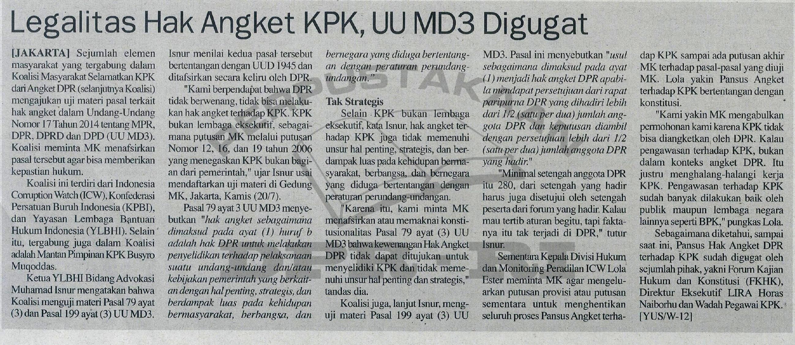 | Judul | Legalitas hak angket KPK, UU MD3 digugat |