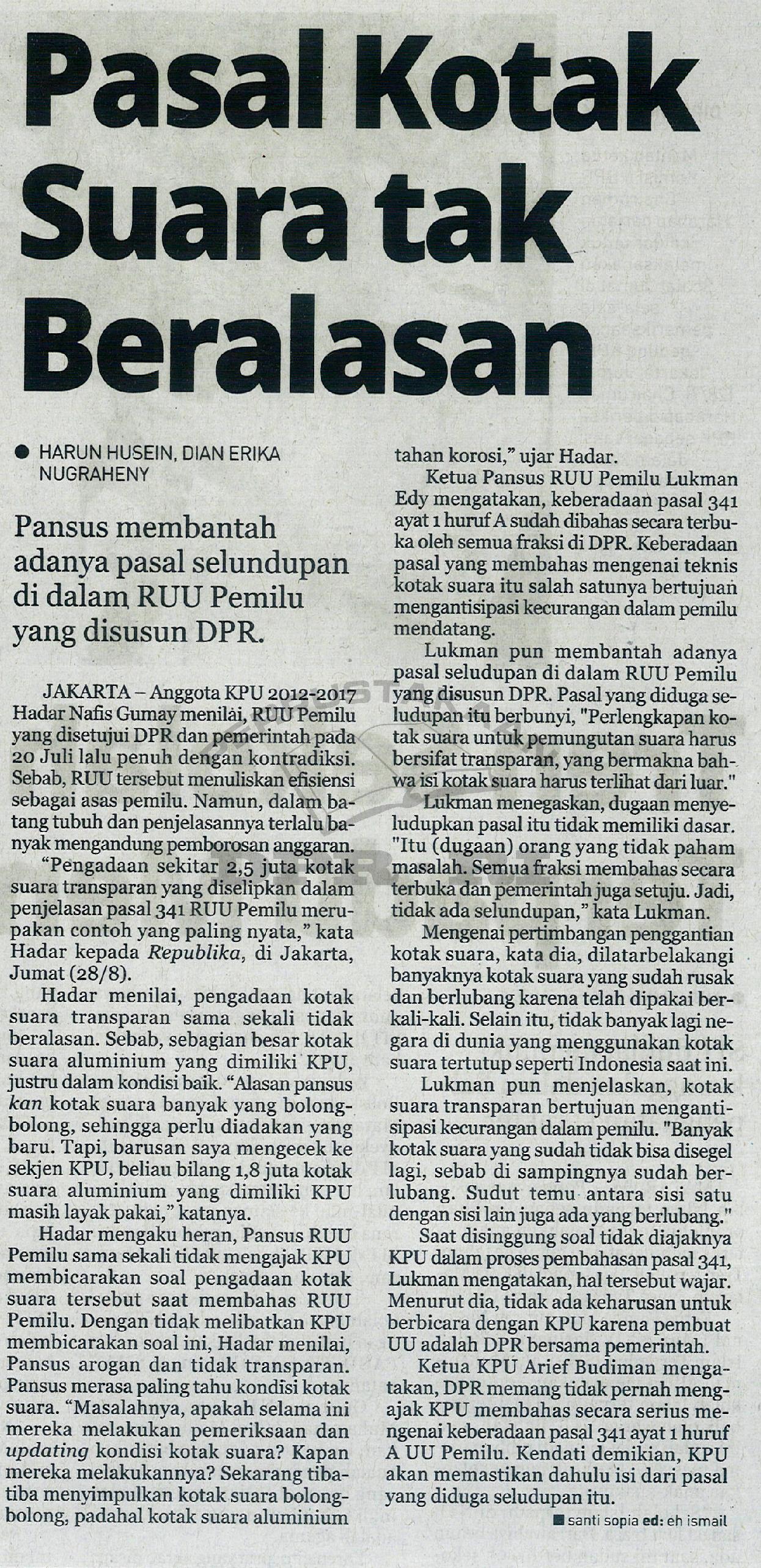 | Kata Kunci | Hadar Nafis Gumay,batang tubuh,penjelasan,anggaran,kotak suara,Lukman Edy,KPU,Arief Budiman |