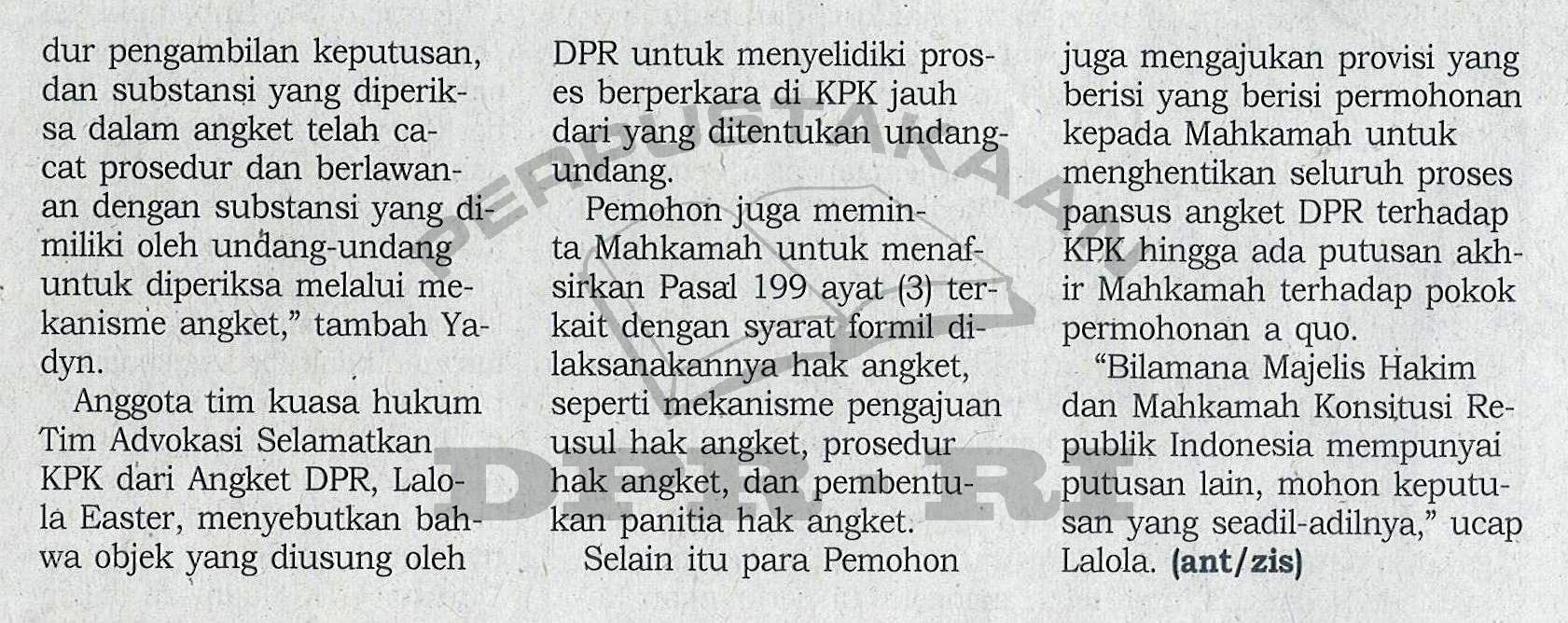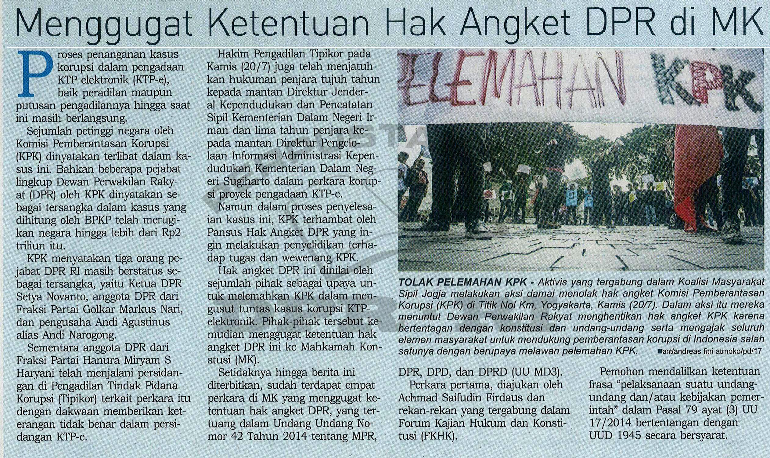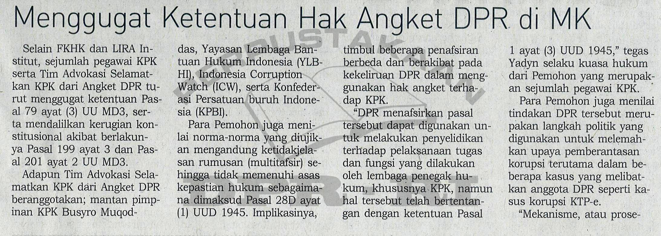 | Judul | Menggugat Ketentuan Hak Angket DPR di MK |