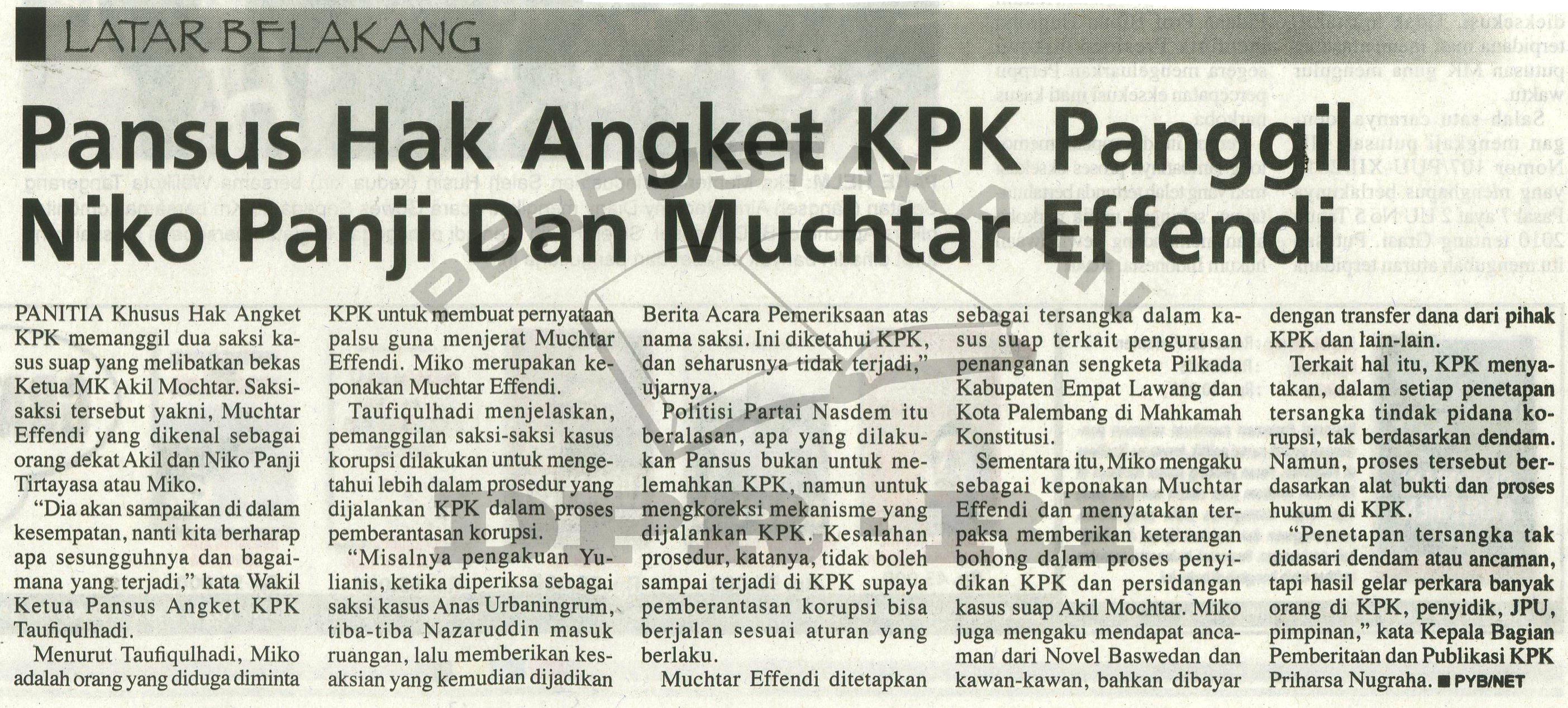 | Kata Kunci | Niko Panji, Muchtar Effendi, saksi kasus suap, pernyataan palsu, kasus korupsi, pansus KPK, Komisi Pemberantasan Korupsi |