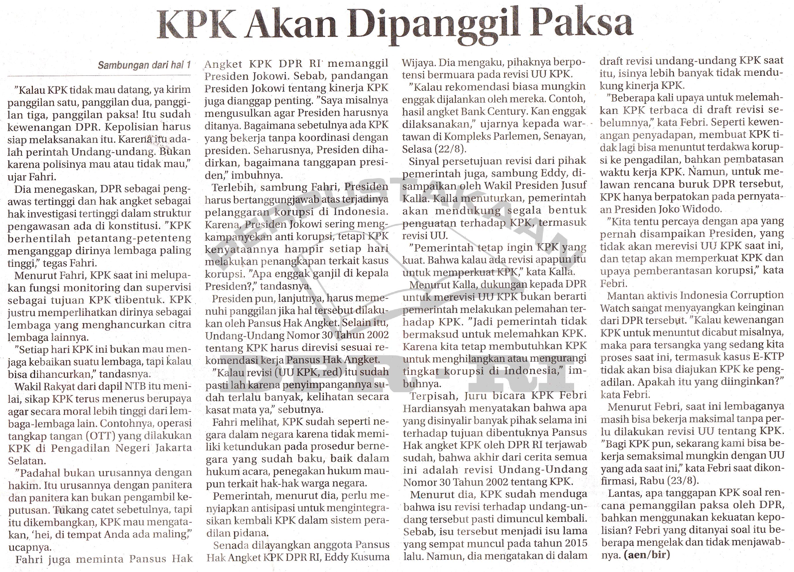 | Kata Kunci | KPK, Komisi Pemberantasan Korupsi, Korupsi, Pansus Hak Angket, Joko Widodo, Fahri Hamzah, Hak Angket, Kinerja KPK, UU KPK |