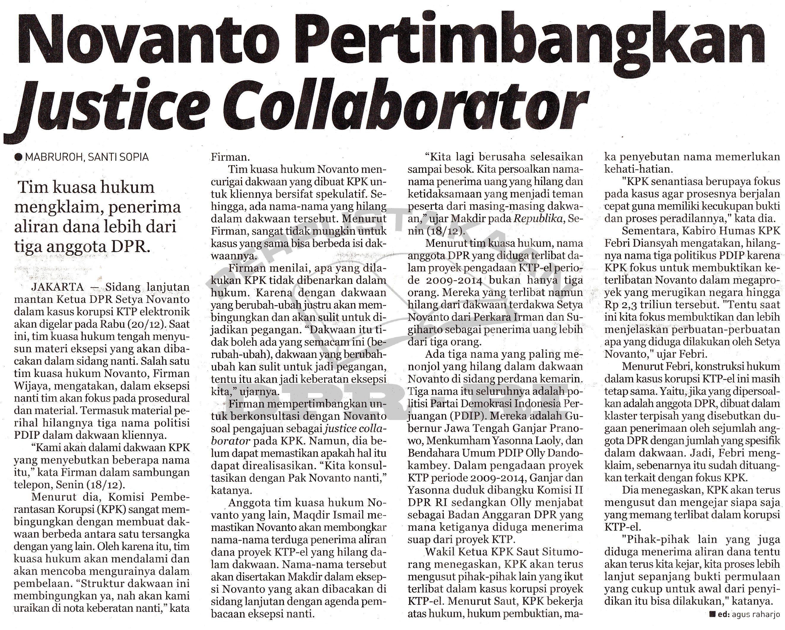| Judul | Novanto Pertimbangkan Justice Collaborator |