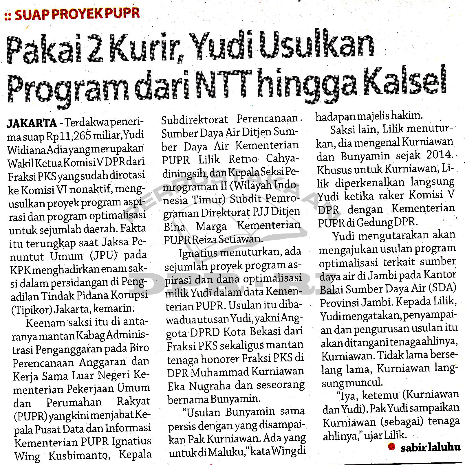 | Kata Kunci | Suap Proyek PUPR, Yudi Widiana, Komisi V, Tipikor, JPU, |