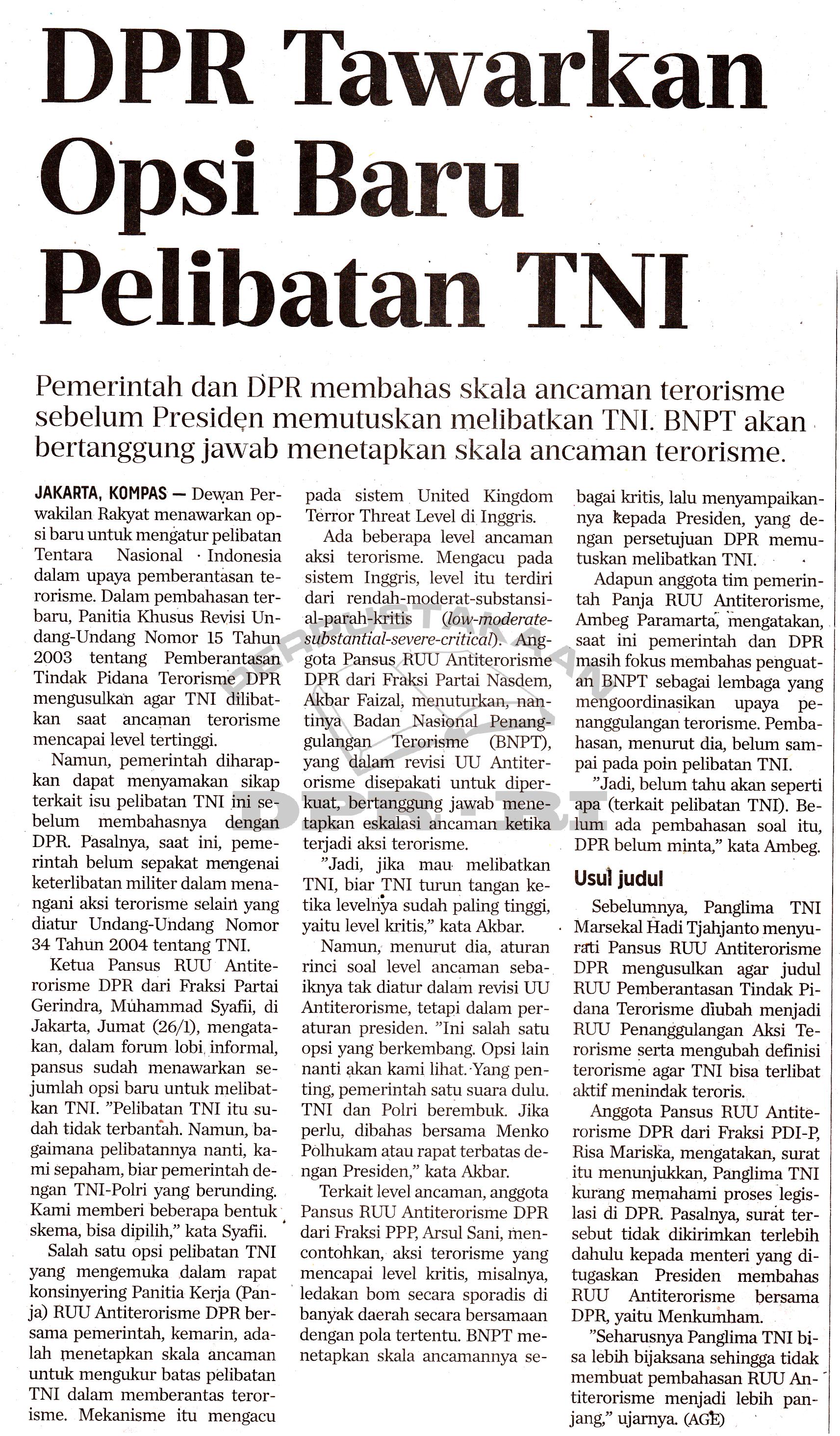 | Judul | DPR Tawarkan Opsi Baru Pelibatan TNI |