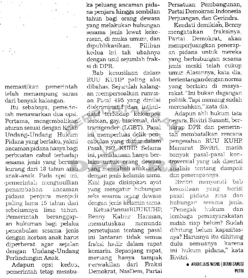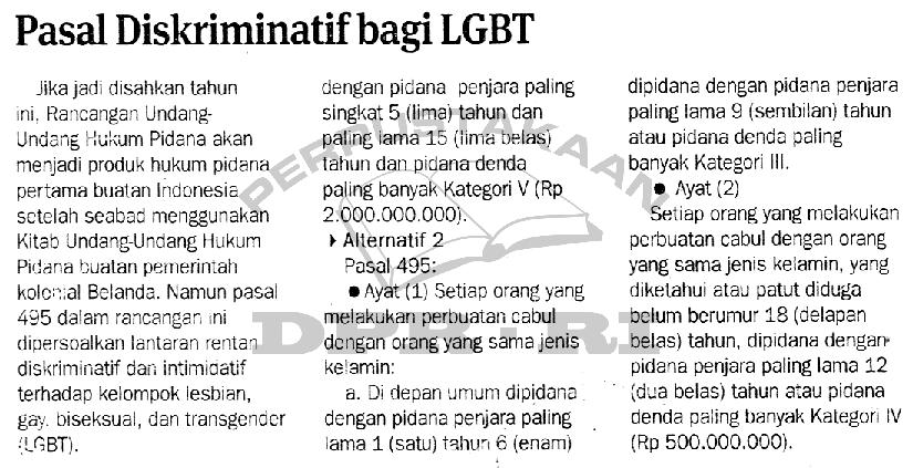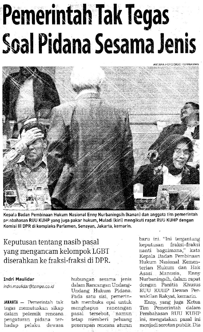 | Judul | Pemerintah tak tegas soal pidana sesama jenis |