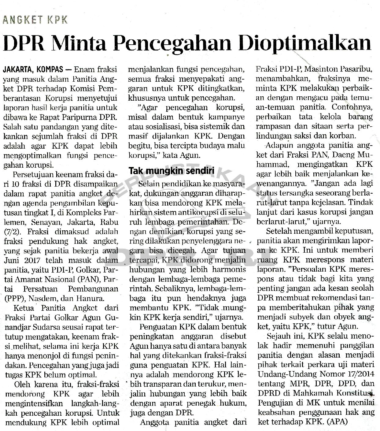 Angket KPK: DPR minta pencegahan dioptimalkan
