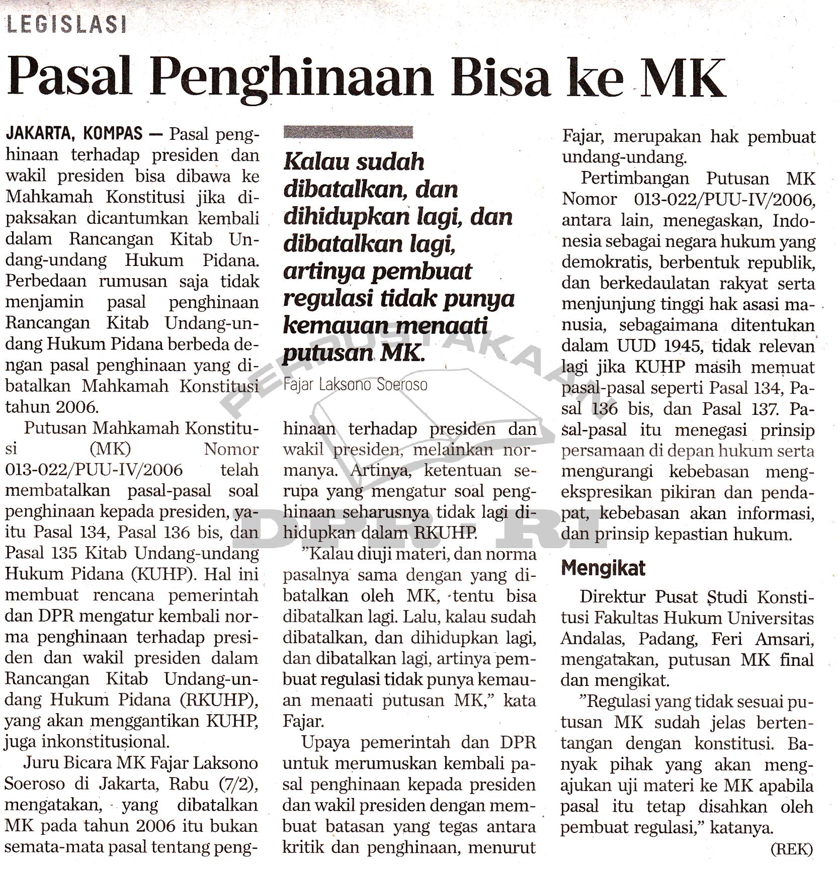 | Judul | Legislasi: Pasal Penghinaan Bisa ke MK |