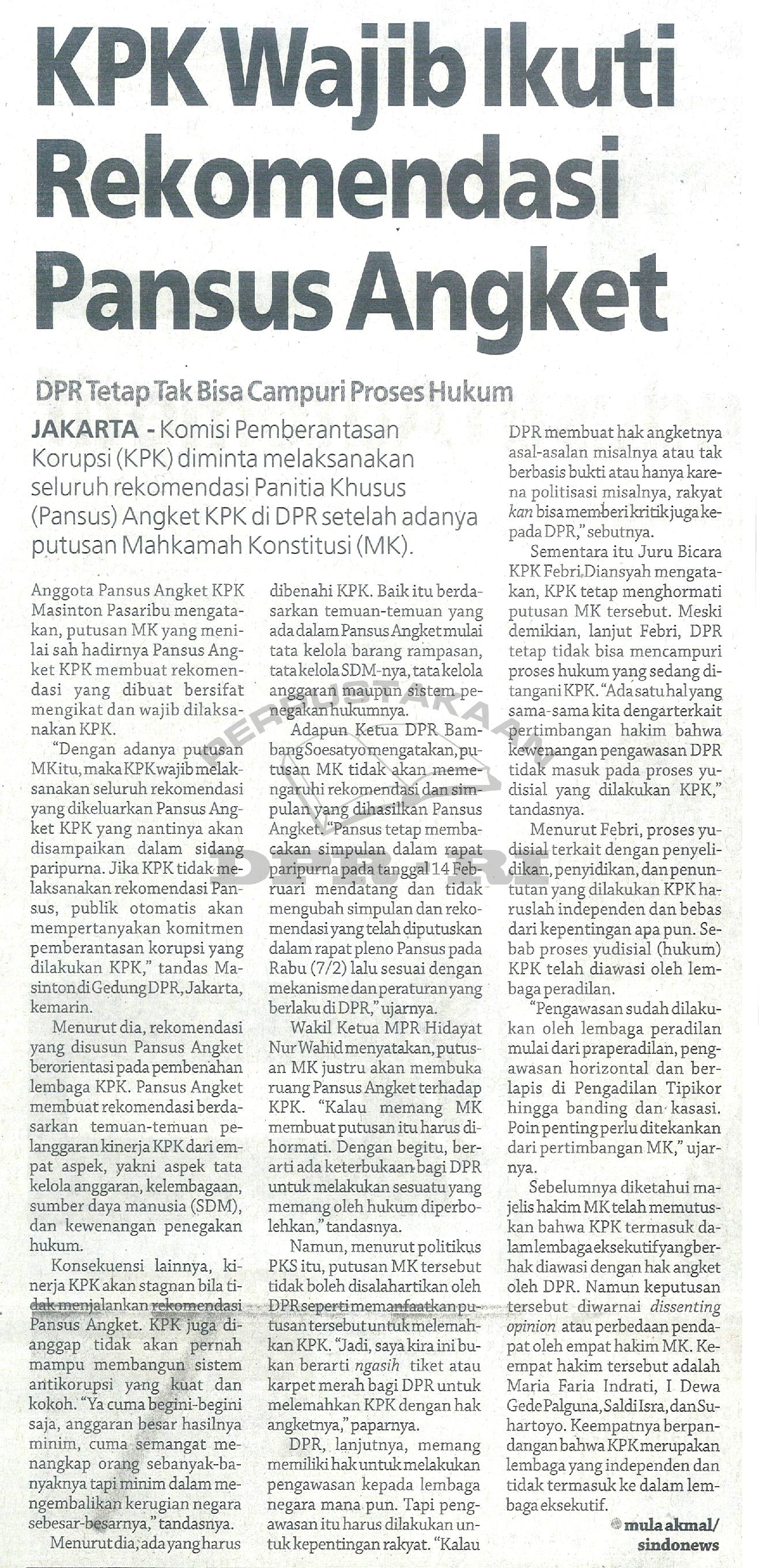 | Judul | KPK Wajib ikuti rekomendasi pansus angket |