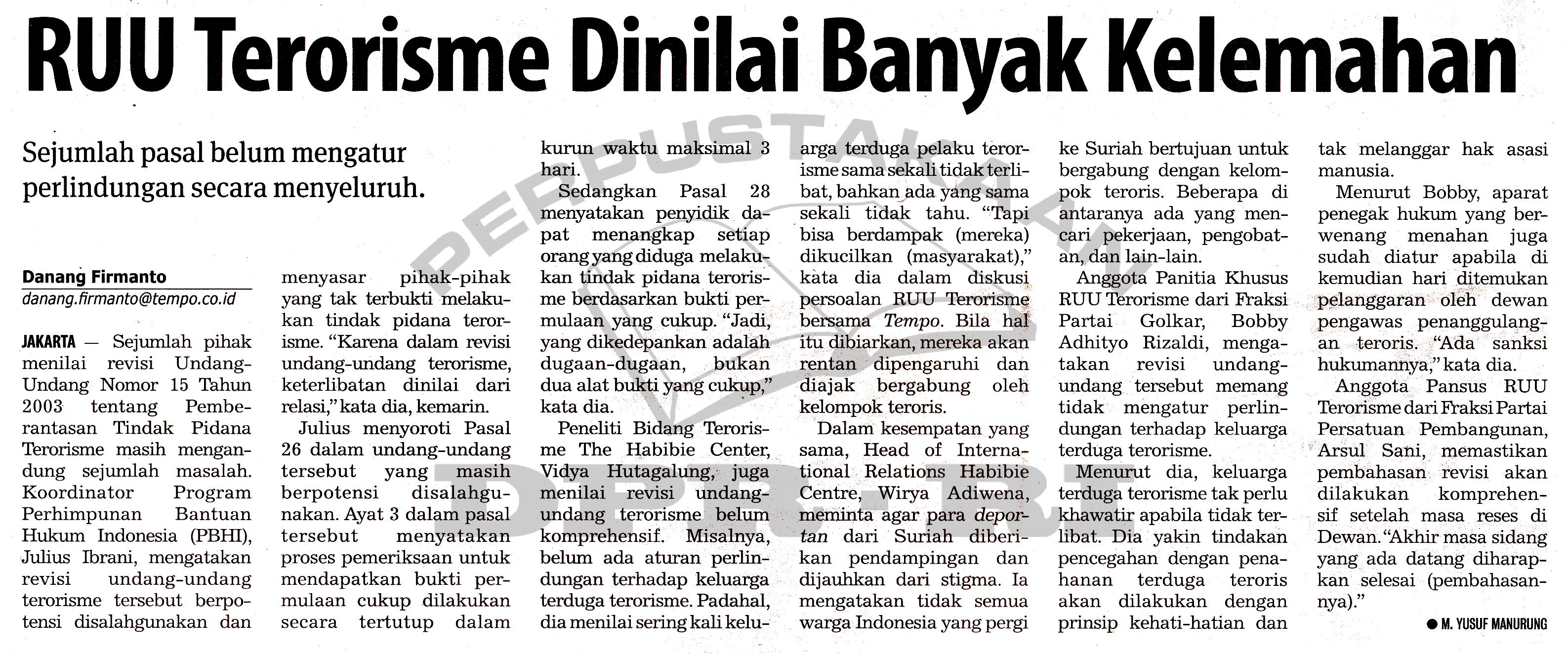 RUU Terorisme, PBHI, Pansus, Pasal 28,