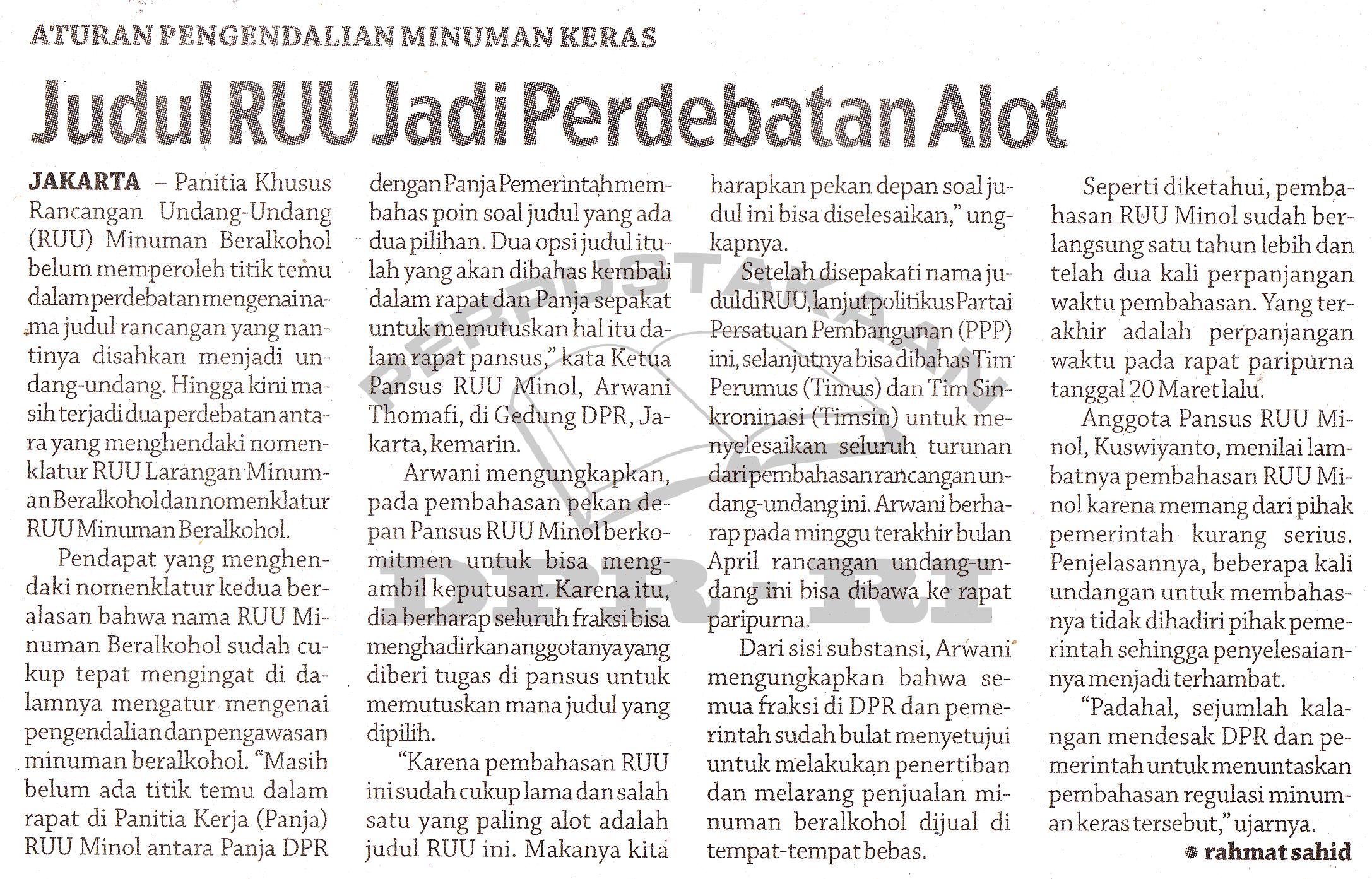 | Judul | Aturan Pengendalian Minuman Keras: Judul RUU Jadi Perdebatan Alot |