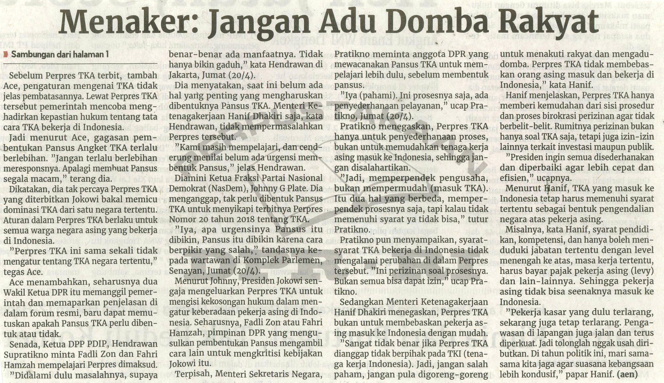 | Judul | Menaker: Jangan Adu Domba Rakyat |
