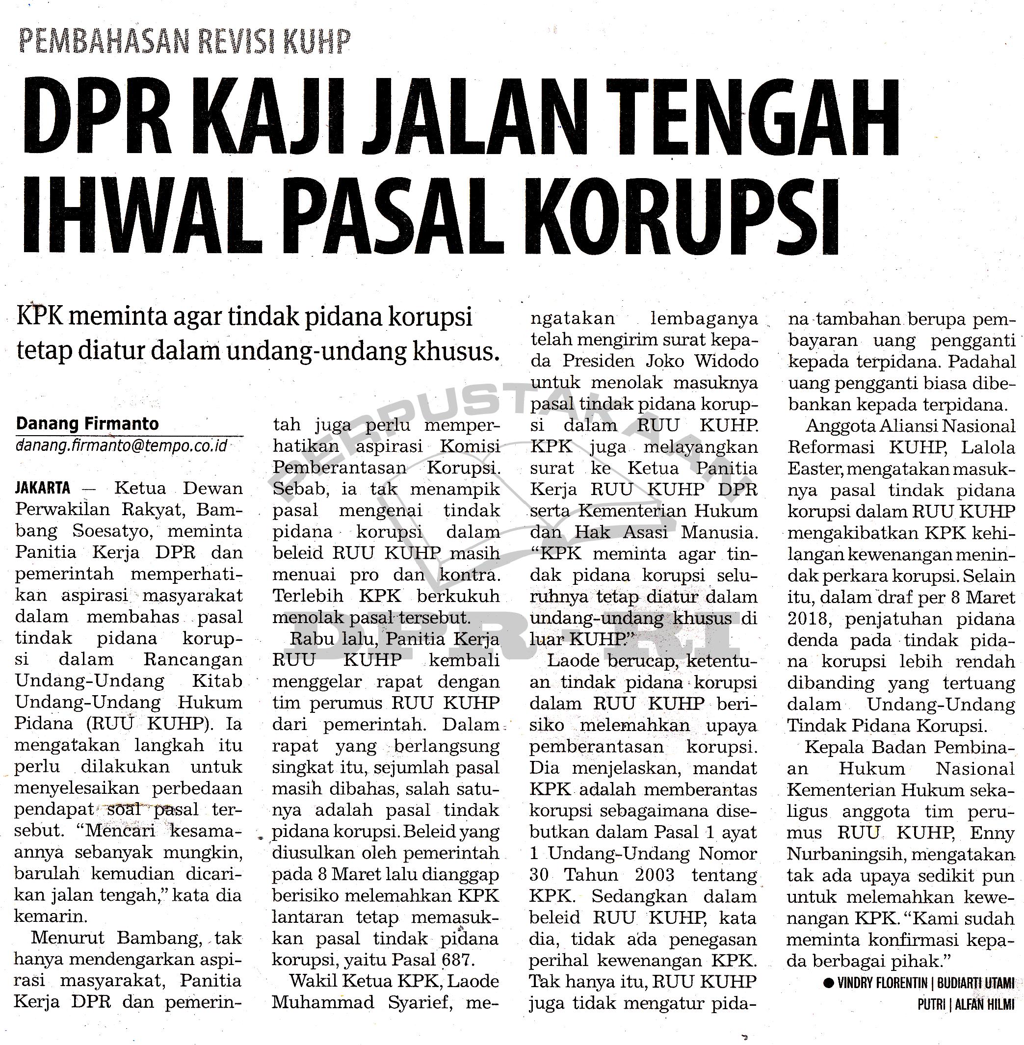 | Judul | DPR Kaji Jalan Tengah Ihwal Pasal Korupsi |