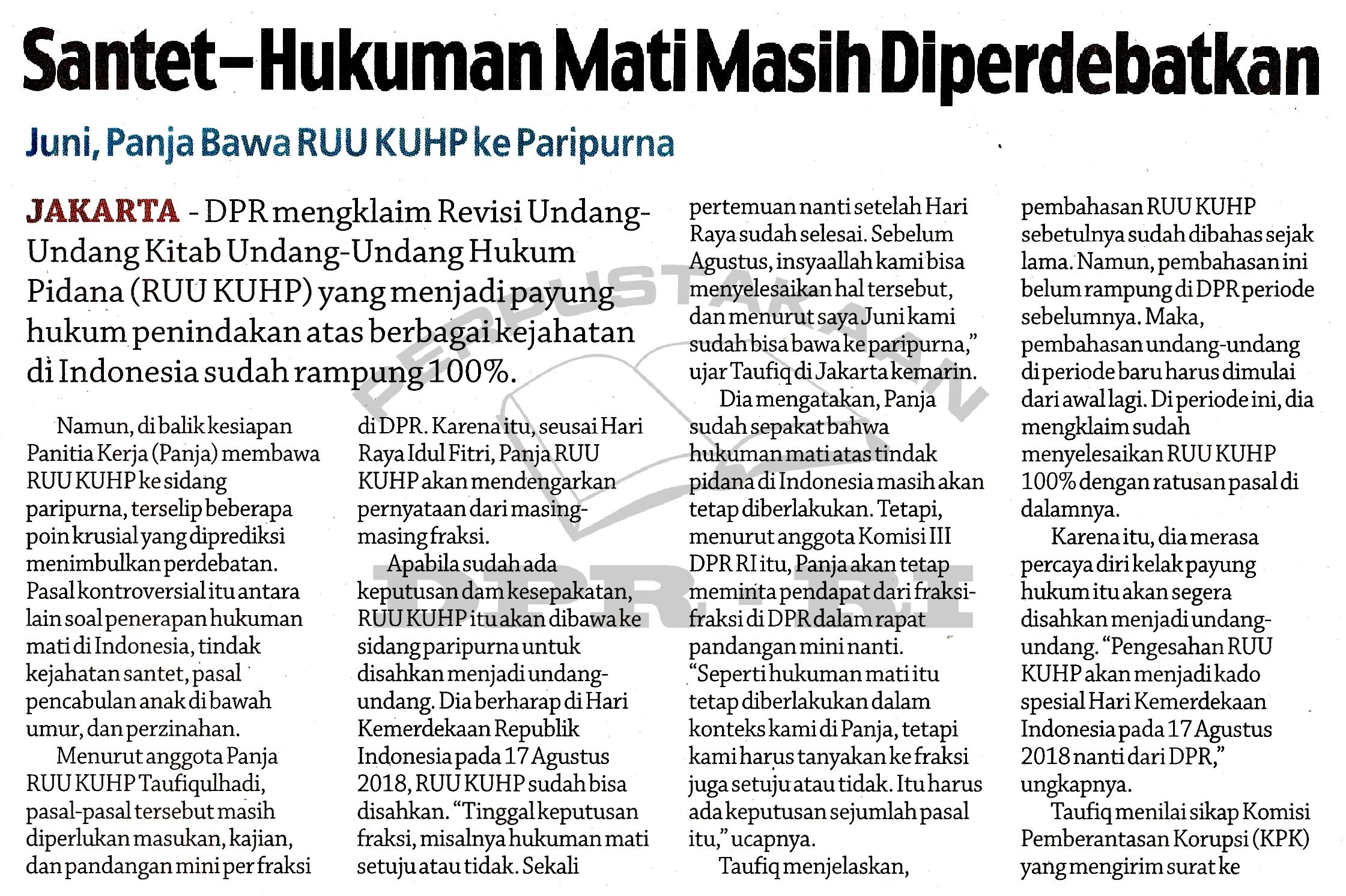 | Kata Kunci | Santet , Revisi Undang-Undang Kitab Undang-Undang Hukum Pidana , Korupsi - Undang-Undang dan Peraturan , Hukuman Mati |