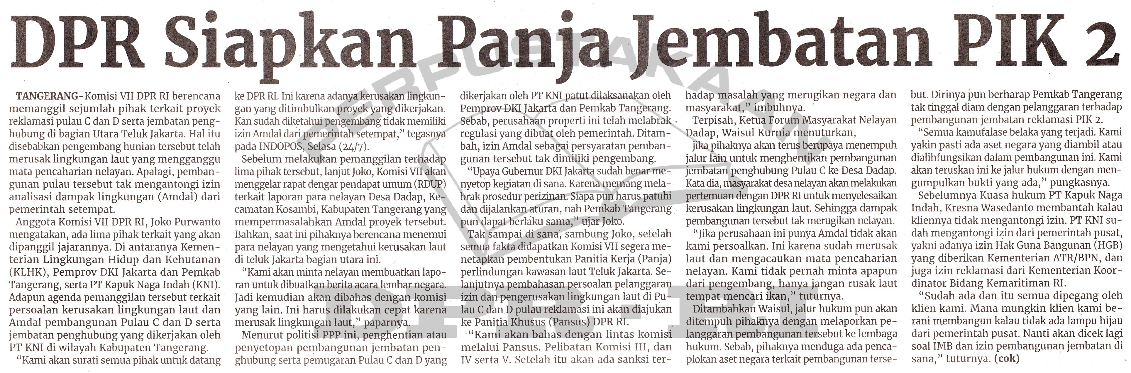 | Judul | DPR Siapkan Panja Jembatan PIK 2 |