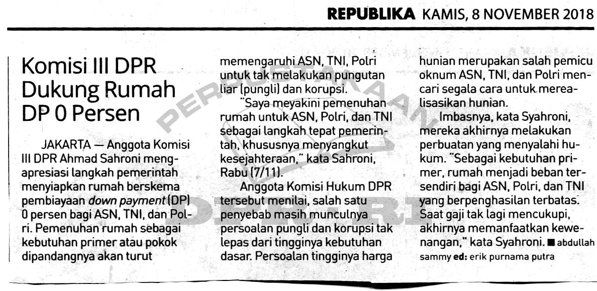 Komisi III DPR Dukung Rumah DP 0 Persen