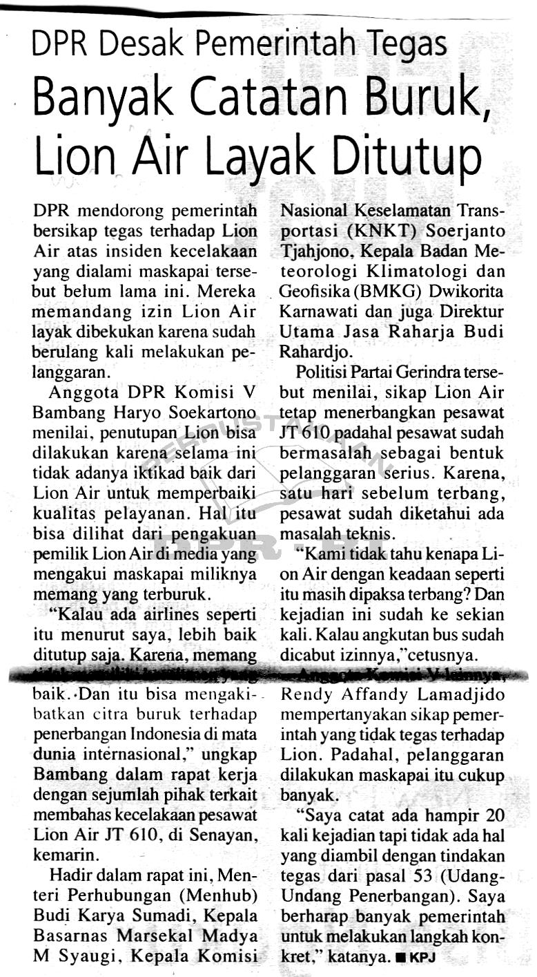 DPR Desak PemerintahTegas Banyak Catatan Buruk, Lion Air Ditutup