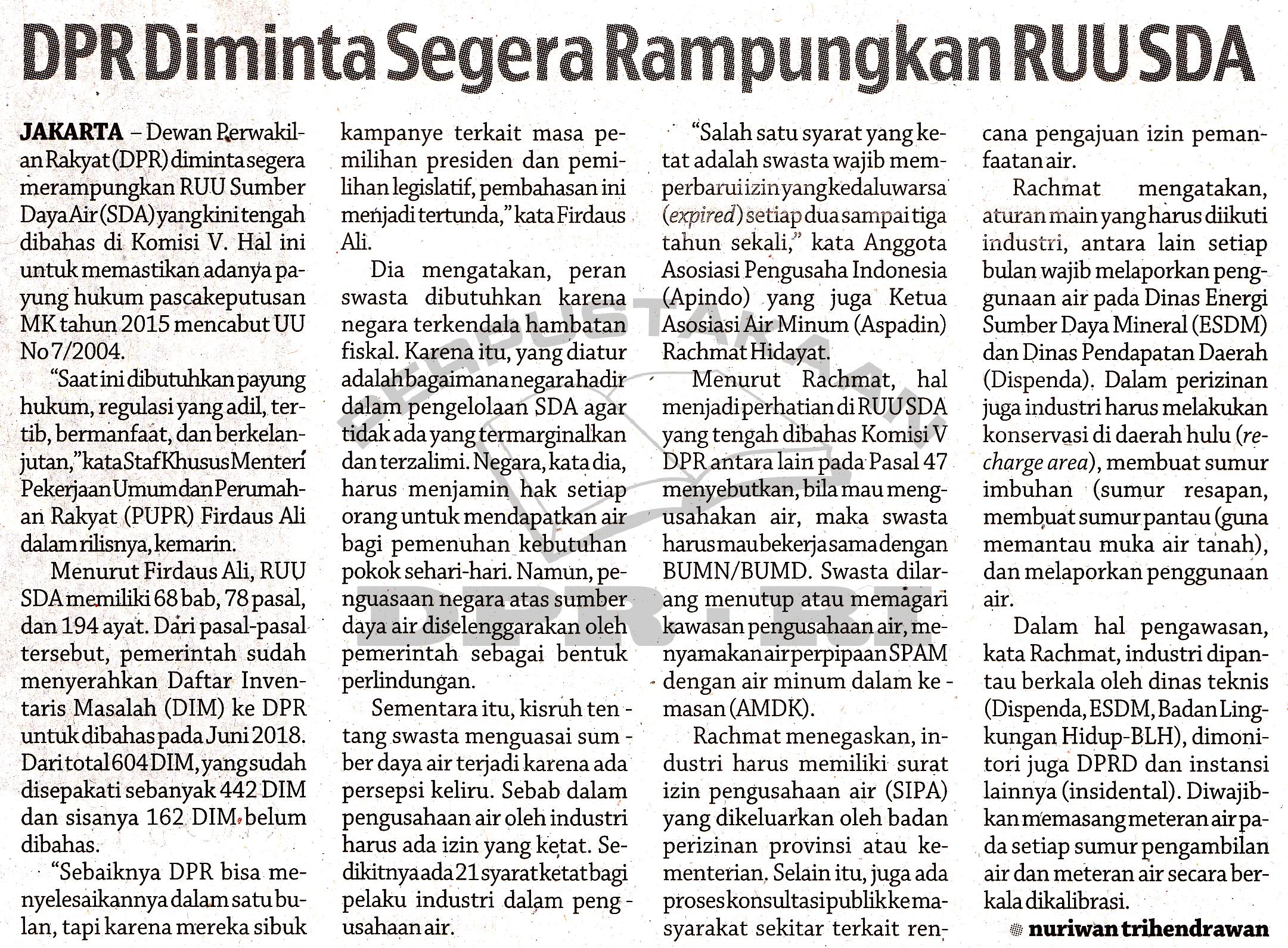 | Judul | DPR Diminta Segera Rampungkan RUU SDA |