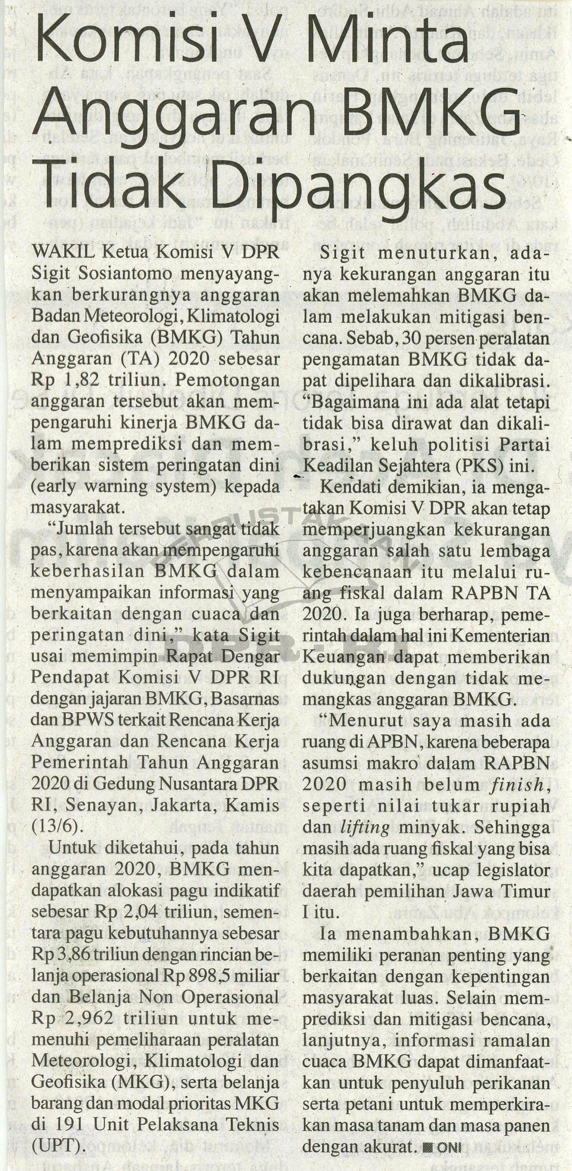 | Judul | Komisi V Minta Anggaran BMKG Tidak Dipangkas |