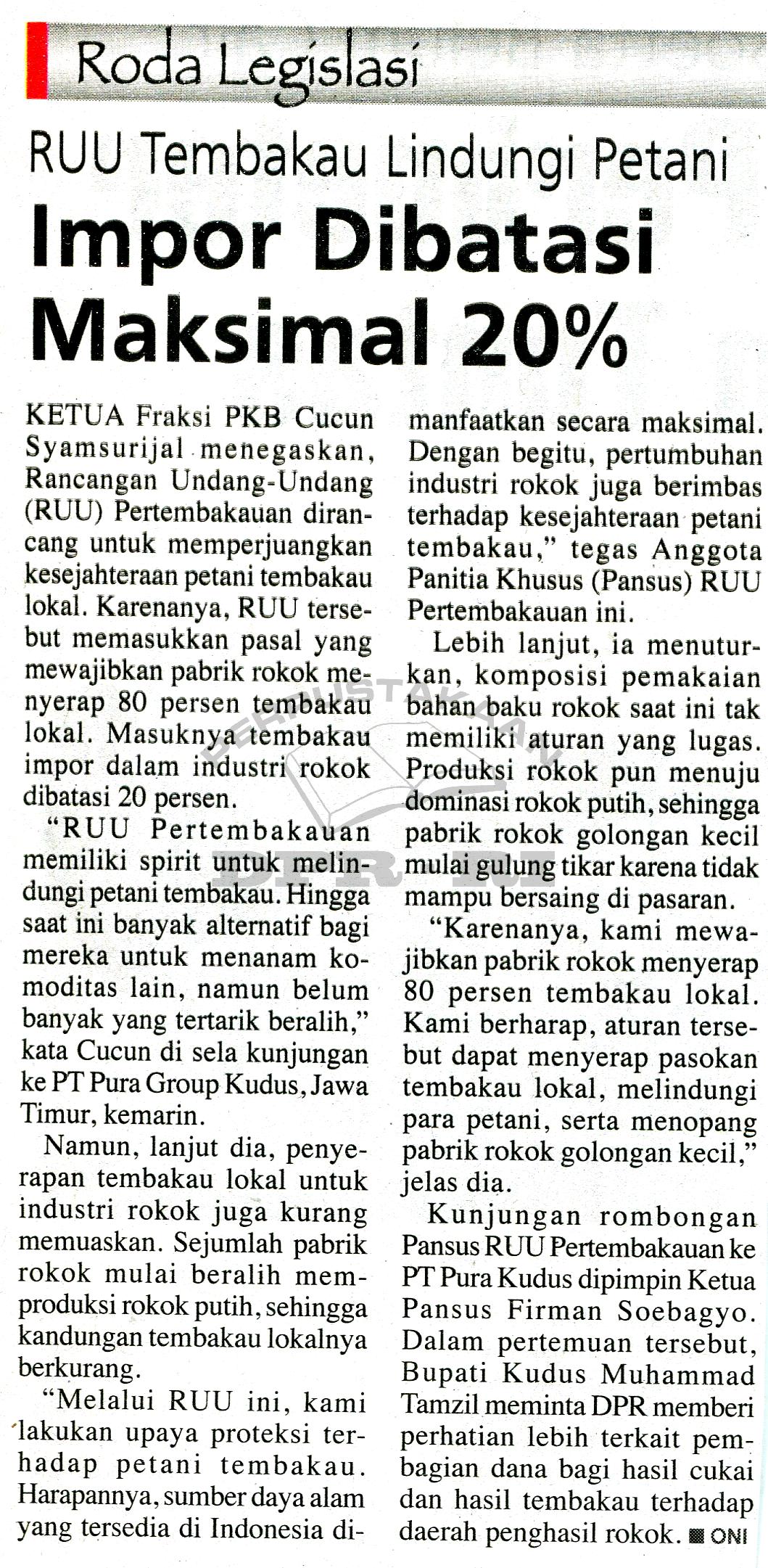 | Judul | RUU Tembakau lindungi petani, impor dibatasi maksimal 20% |
