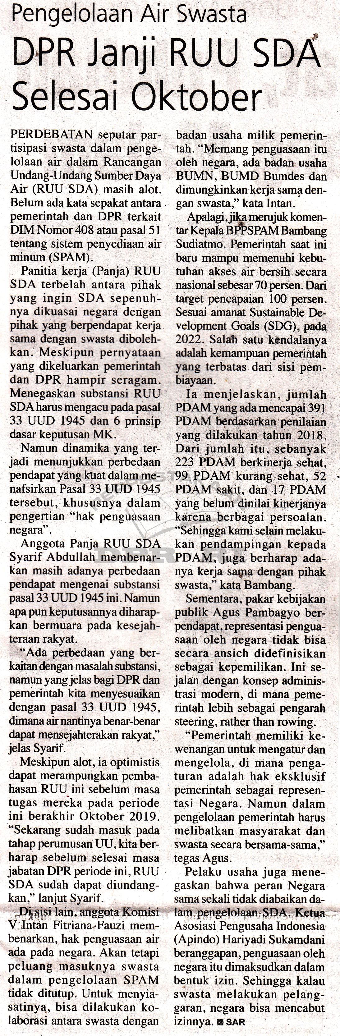 | Judul | Pengelolaan air swasta, DPR janji RUU SDA selesai Oktober |