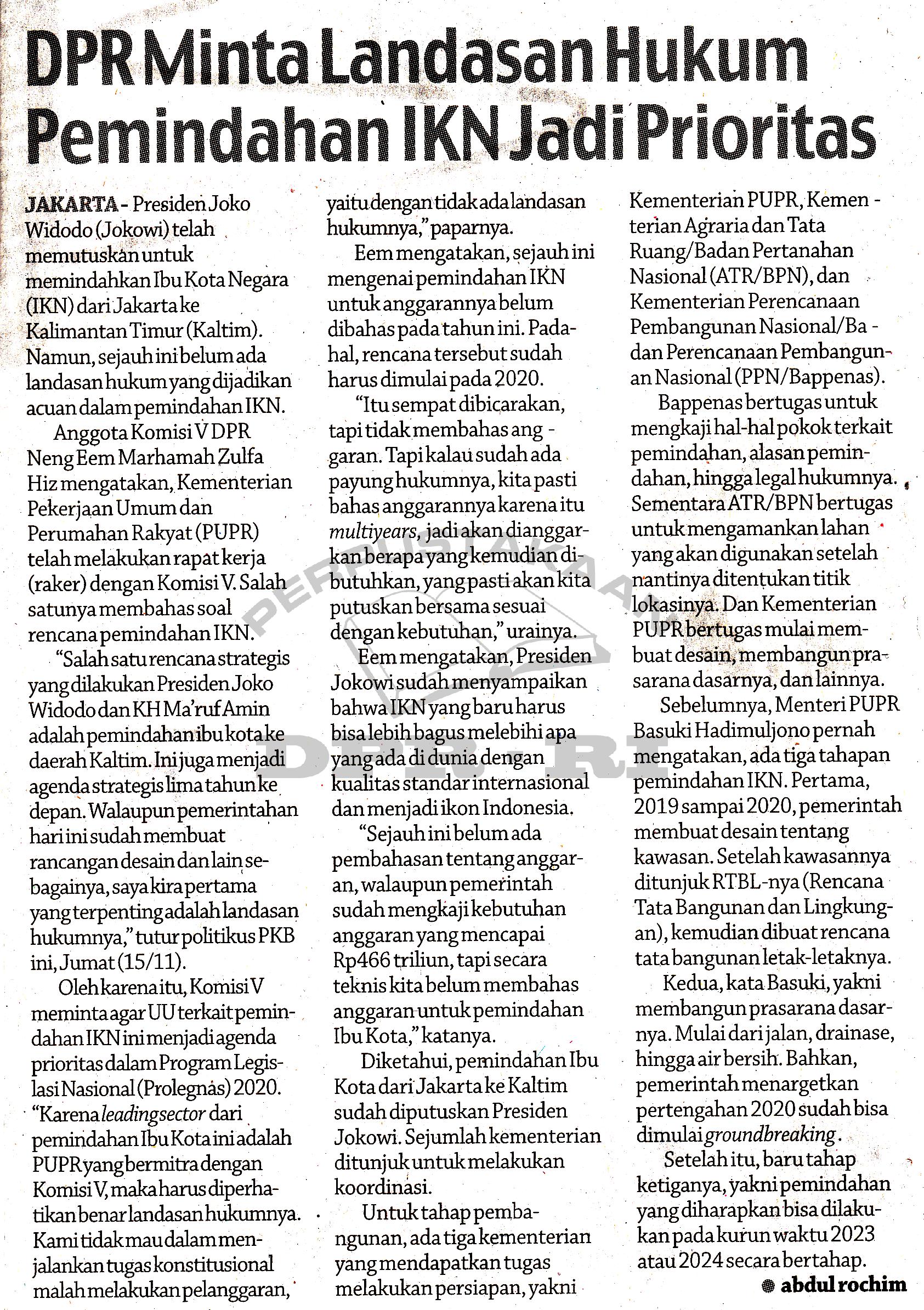 | Judul | DPR Minta Landasan Hukum Pemindahan IKN Jadi Prioritas |