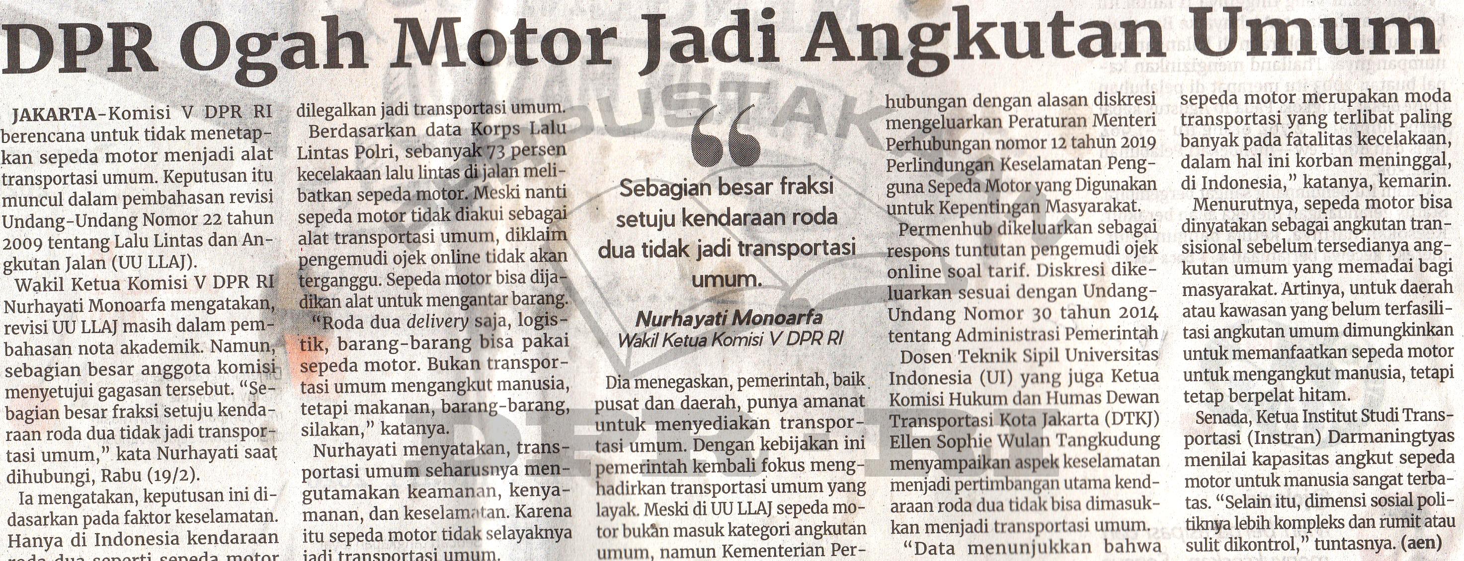 | Kata Kunci | Angkutan umum, motor, Transportasi umum, UU LLAJ, Ojek online, Nurhayati Monoarla |