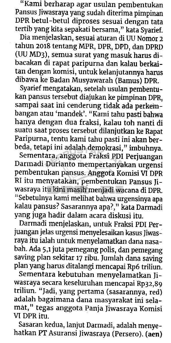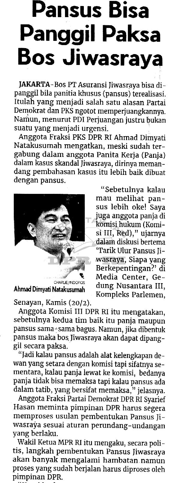 | Judul | Pansus bisa panggil paksa bos jiwasraya |