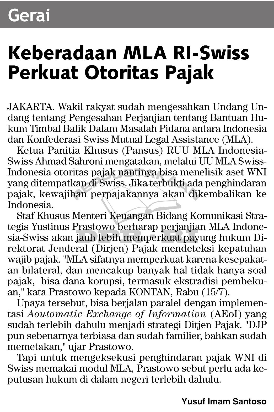 | Judul | Keberadaan MLA RI-Swiss Perkuat Otoritas Pajak: Gerai |