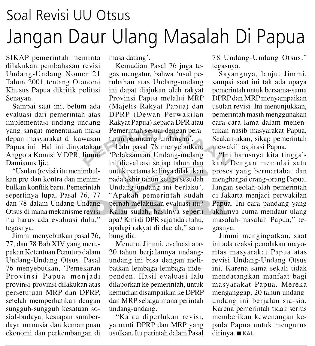 | Judul | Jangan Daur Ulang Masalah di Papua: Soal Revisi UU Otsus |