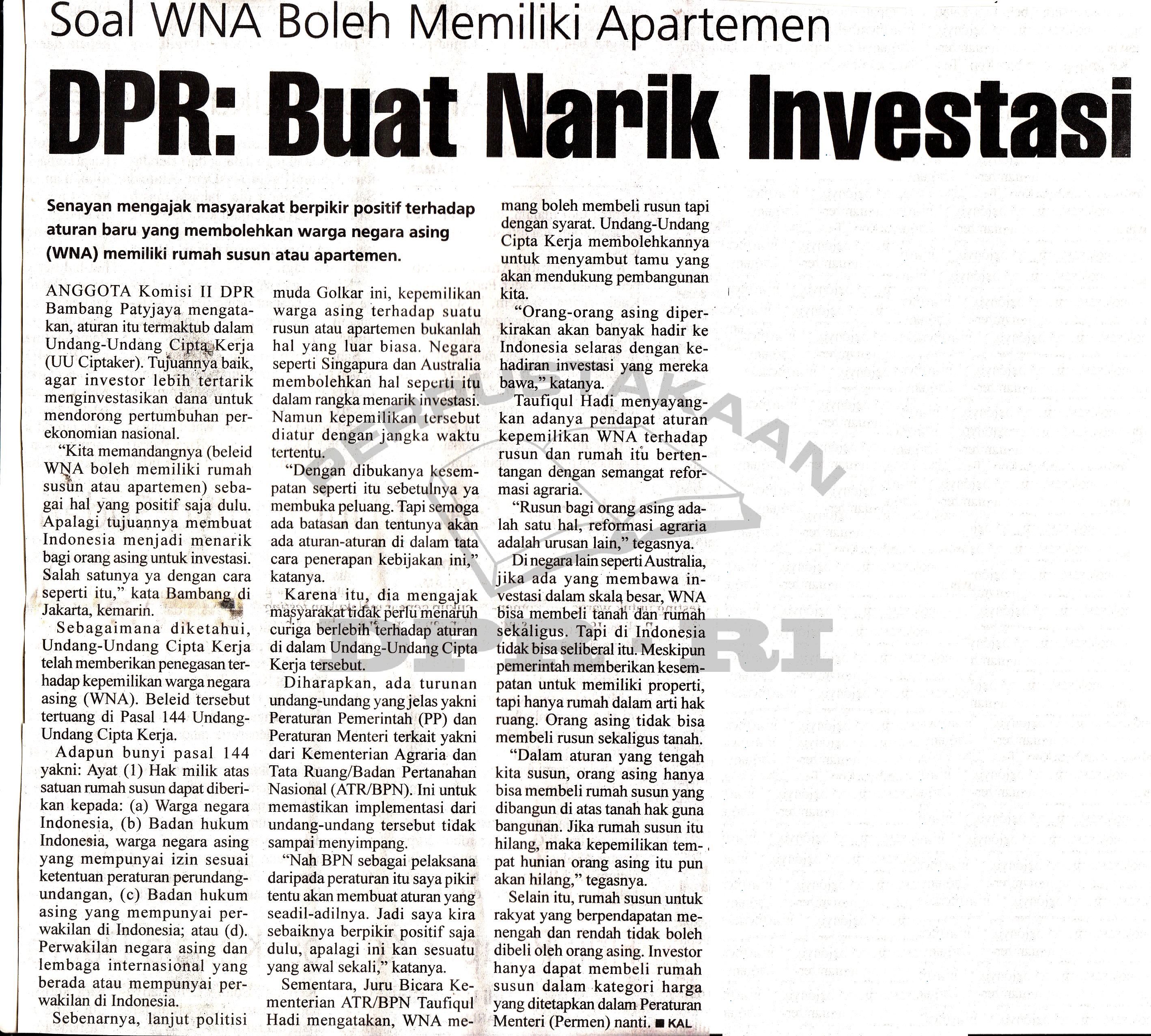 | Judul | Soal WNA boleh memiliki apartemen, DPR: buat narik investasi |