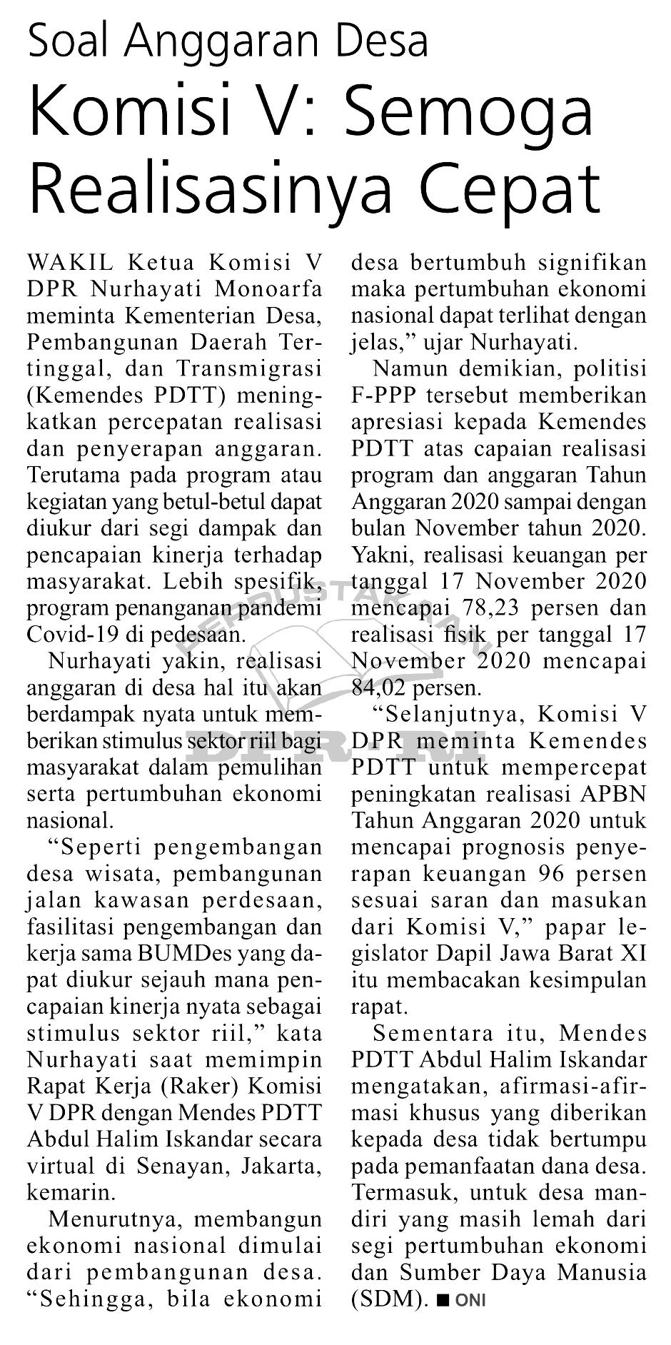 | Judul | Soal Anggaran Desa - Komisi V: Semoga Realisasinya Cepat |