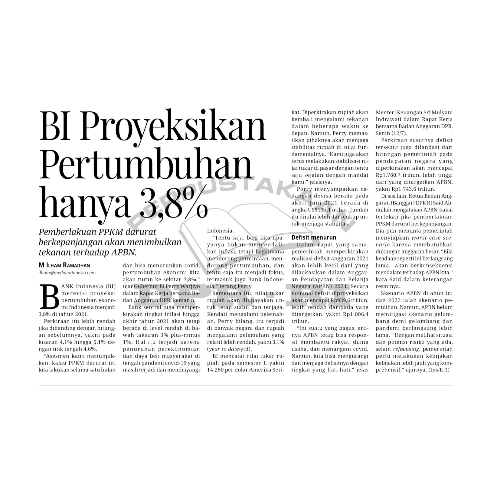 BI Proyeksikan Pertumbuhan Hanya 38%