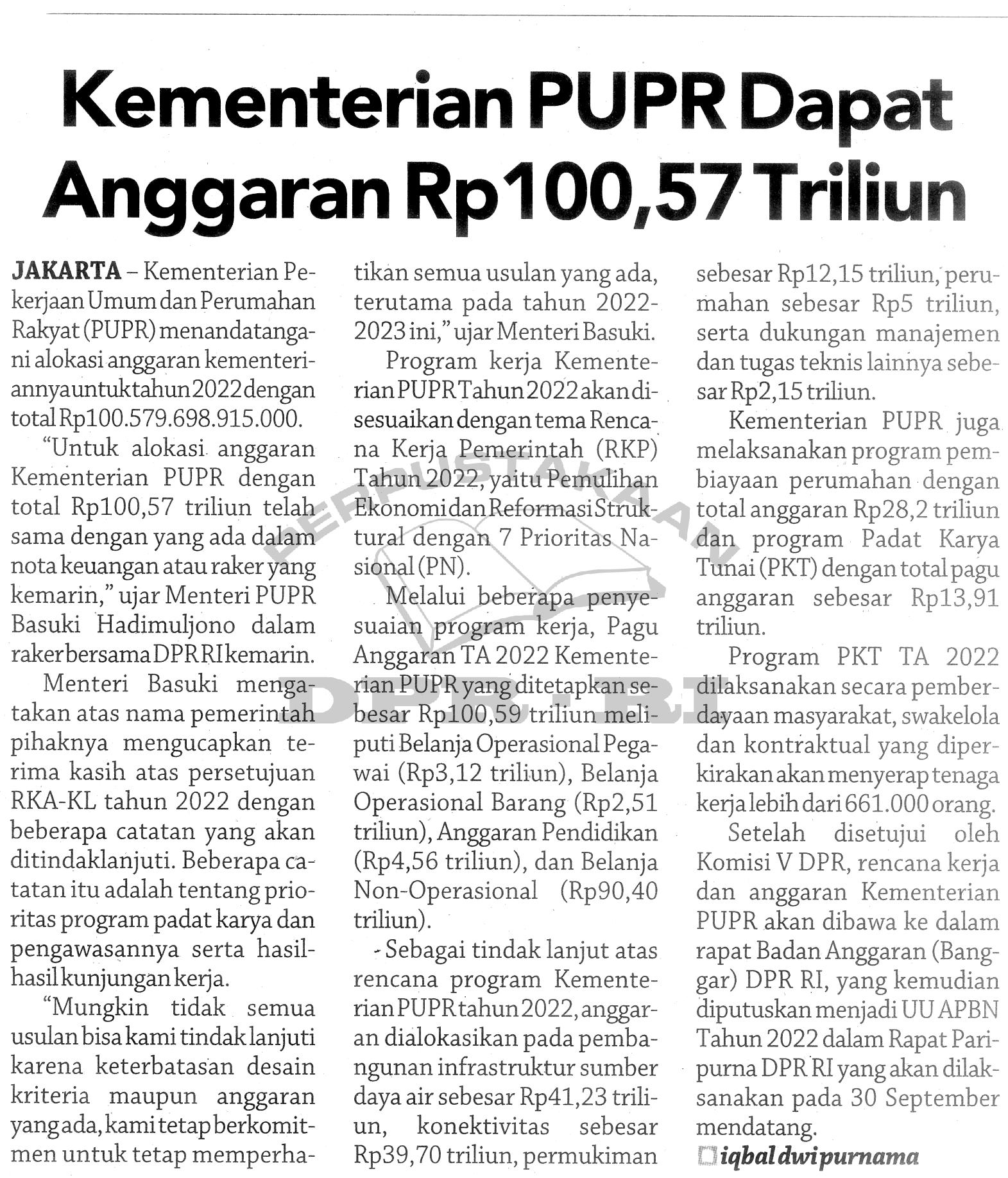 | Judul | Kementerian PUPR Dapat Anggaran Rp 100,57 Triliun |