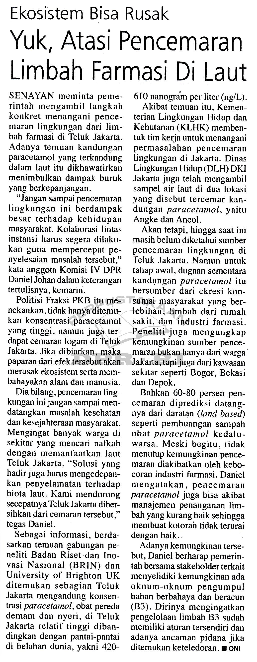 | Kata Kunci | Pencemaran Limbah Farmasi, Pencemaran Lingkungan, KLHK, Komisi IV, kandugan Paracetamol |