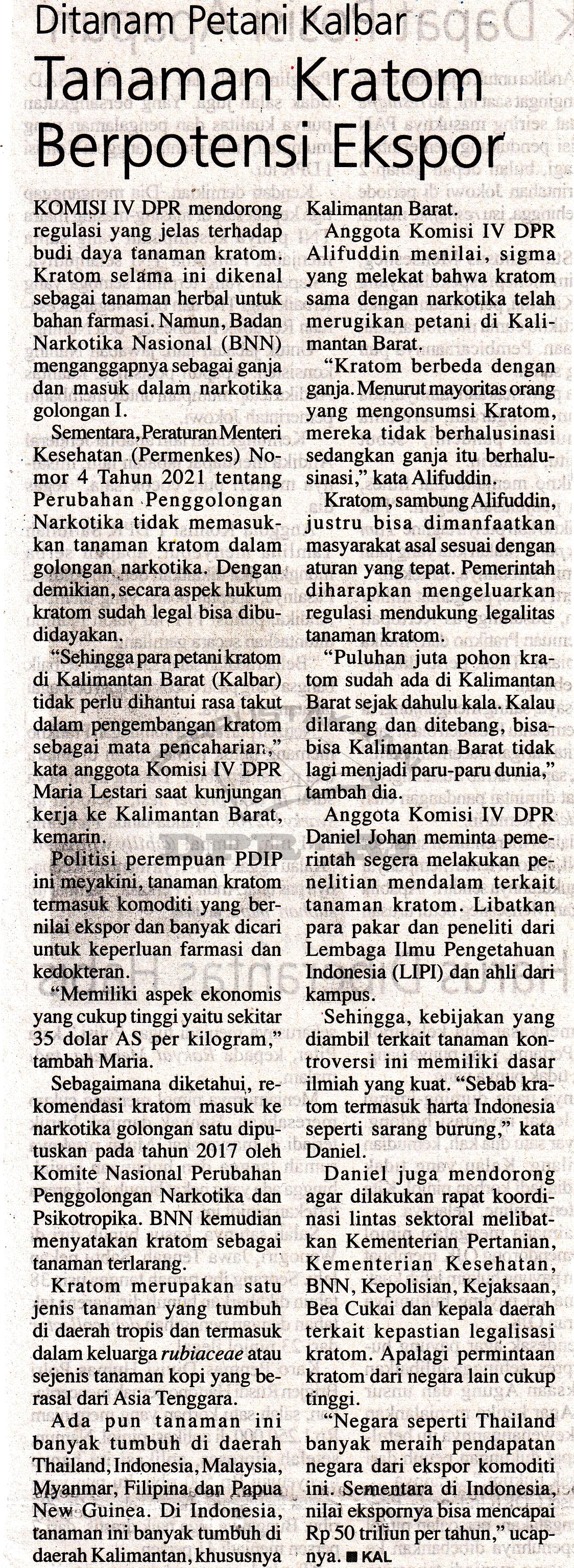 Tanaman kratom berpotensi ekspor