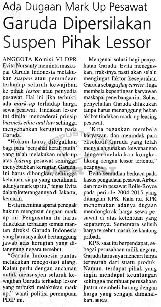 | Judul | Ada dugaan mark up pesawat,Garuda dipersilakan suspen pihak lessor |