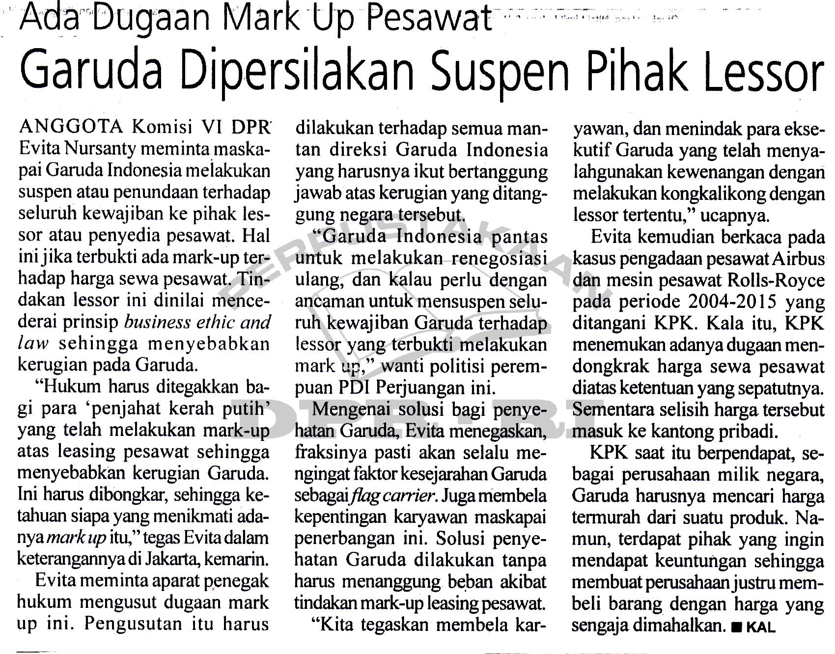 | Kata Kunci | Mark Up Pesawat, Garuda, Komisi VI, Evita Nursanti, business ethic and law, KPK |