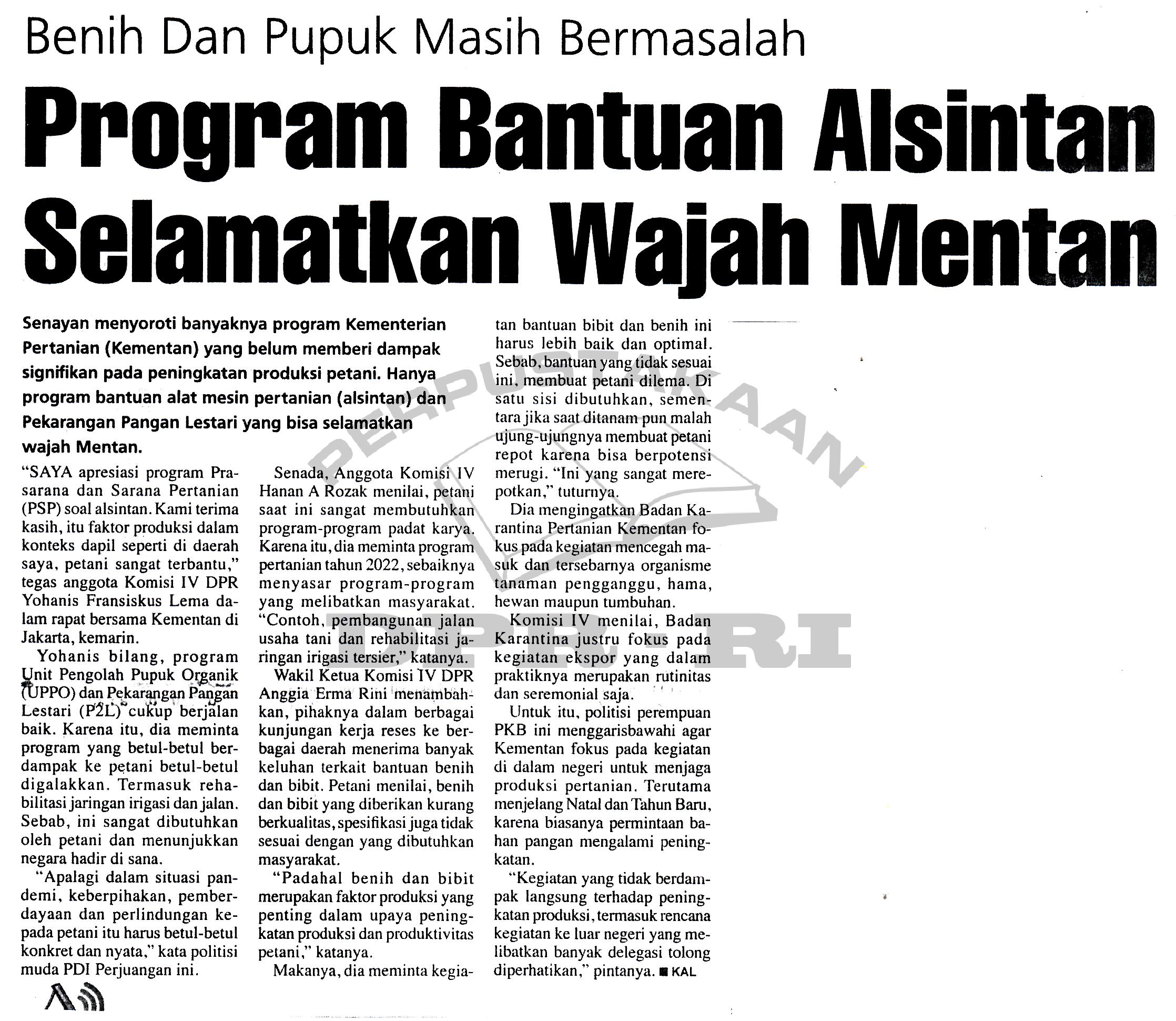 | Judul | Program Bantuan Alsintan Selamatkan Wajah Mentan |