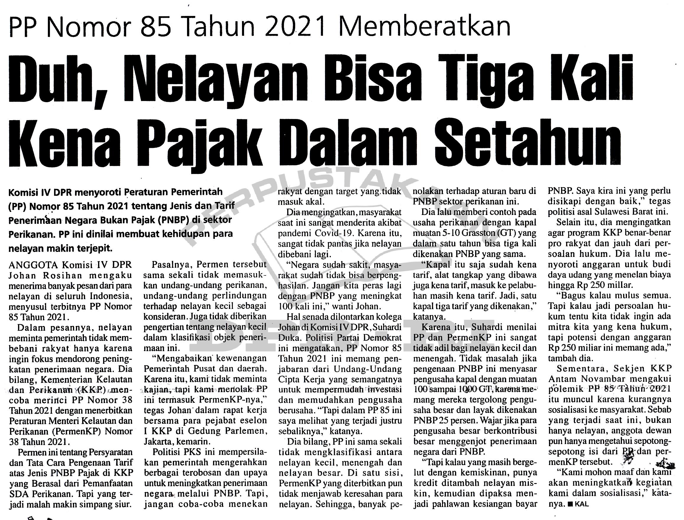 | Kata Kunci | PP Nomor 85 Tahun 2021 Memberatkan, Komisi IV, Johan Rosihan, PNBP, KKP, |