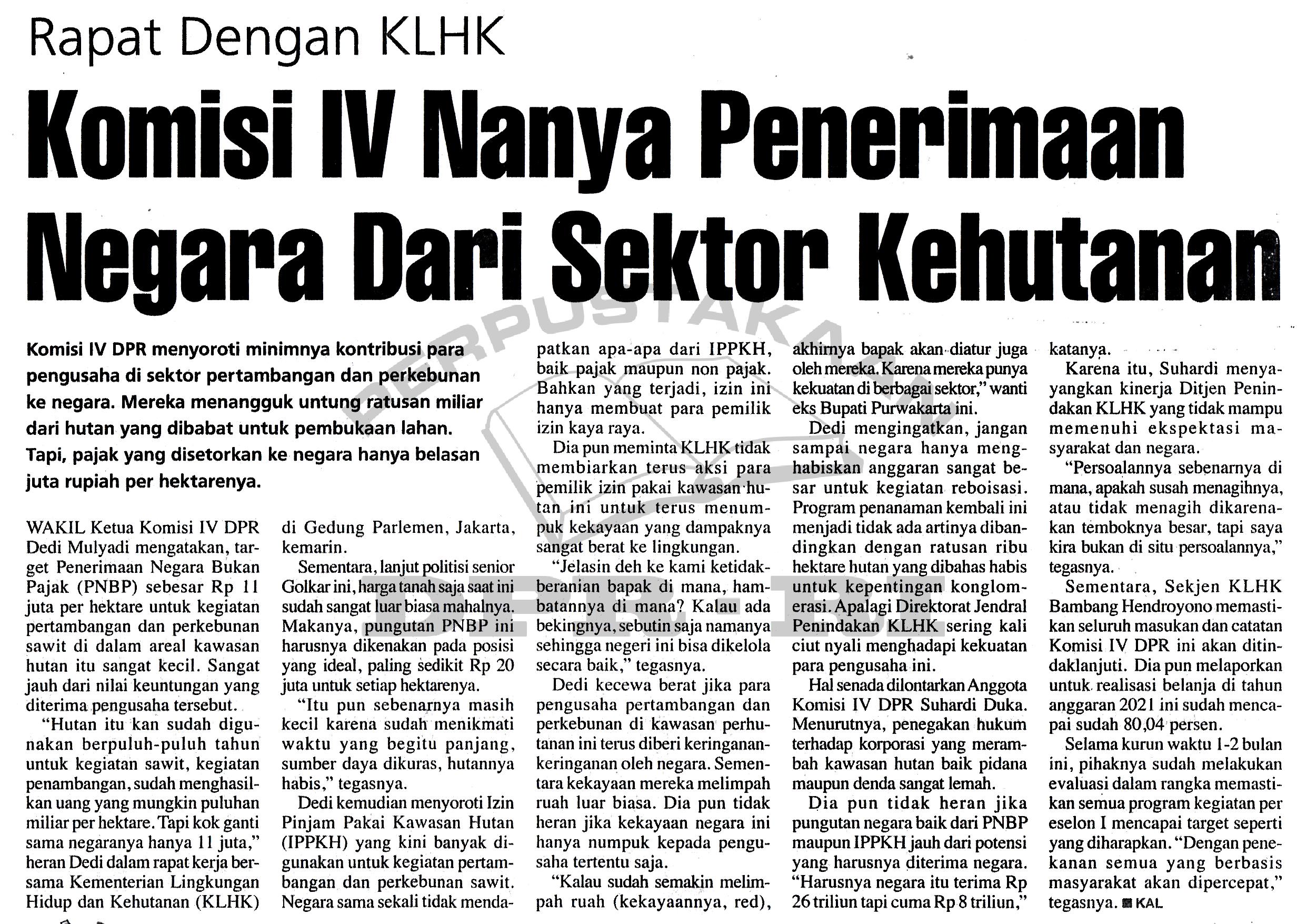 | Judul | Komisi IV Nanya Penerimaan Negara Dari Sektor Kehutanan |