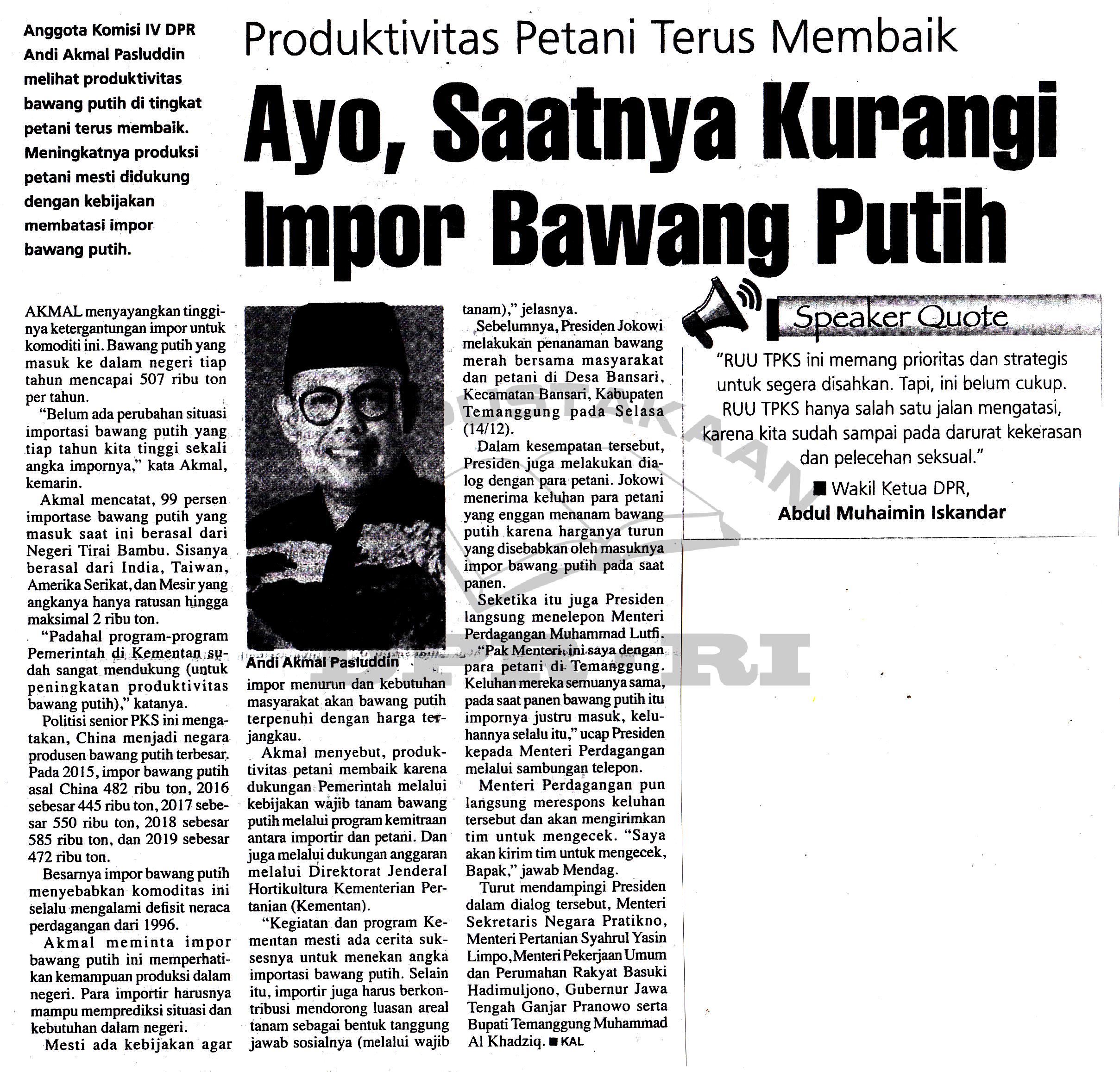 | Kata Kunci | Produktivitas bawang putih, membatasi impor, Komisi IV, Andi Akmal Pasluddin, Kementan |