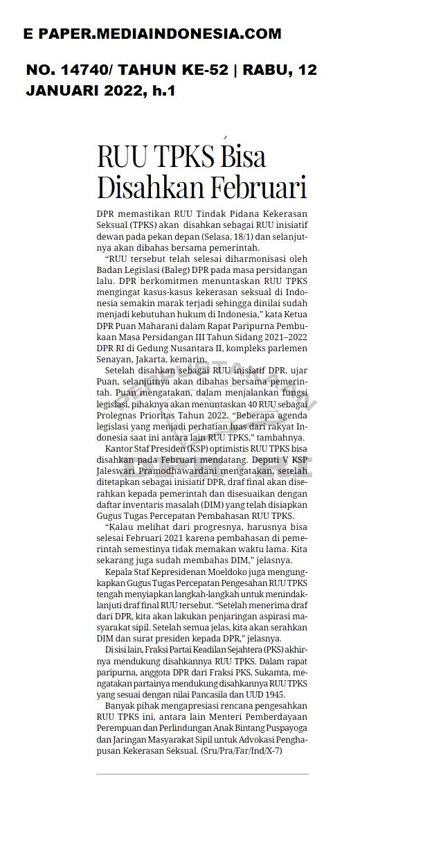 | Judul | RUU TPKS bisa disahkan Februari |
